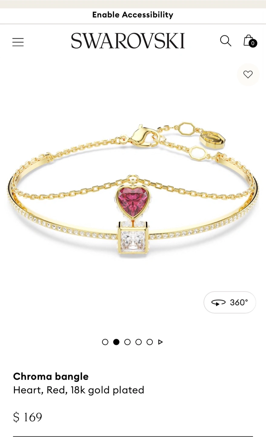 Gorgeous Swarovski Chroma bangle bracelet. Features a red heart and crystals. 18k gold plated. Lobster clasp. Comes with original box.