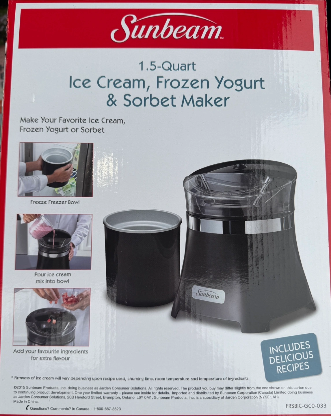 Sunbeam 1.5-Quart Ice Cream, Frozen Yogurt & Sorbet Maker