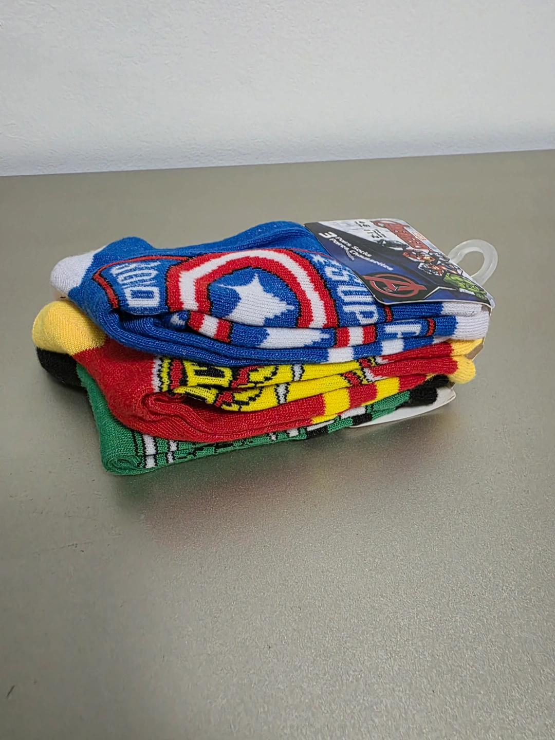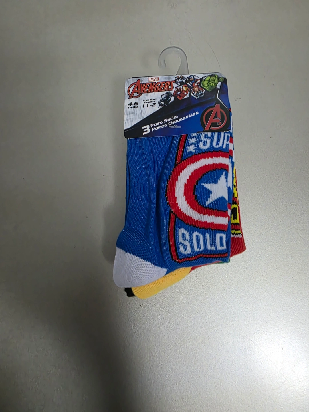301New, never worn. Three pairs of Marvel Avengers crew socks. Features Avengers characters. Sizes 4-6, toddler/children's sizes.