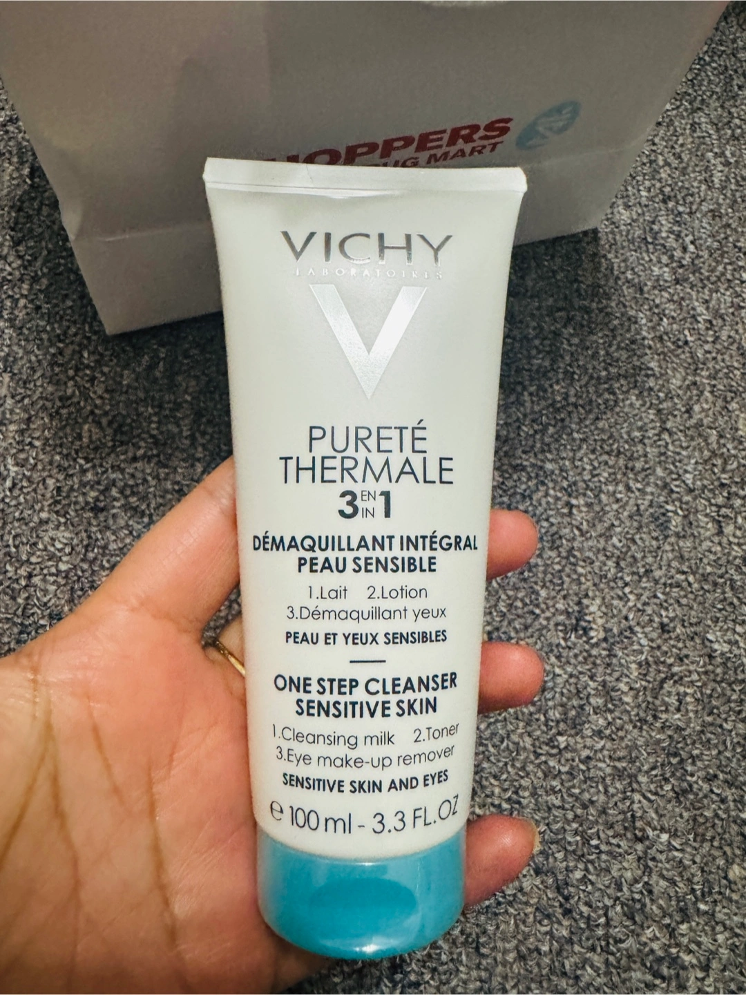 One step cleanser for sensitive skin. Cleansing milk, toner, and eye make-up remover. 100ml tube.