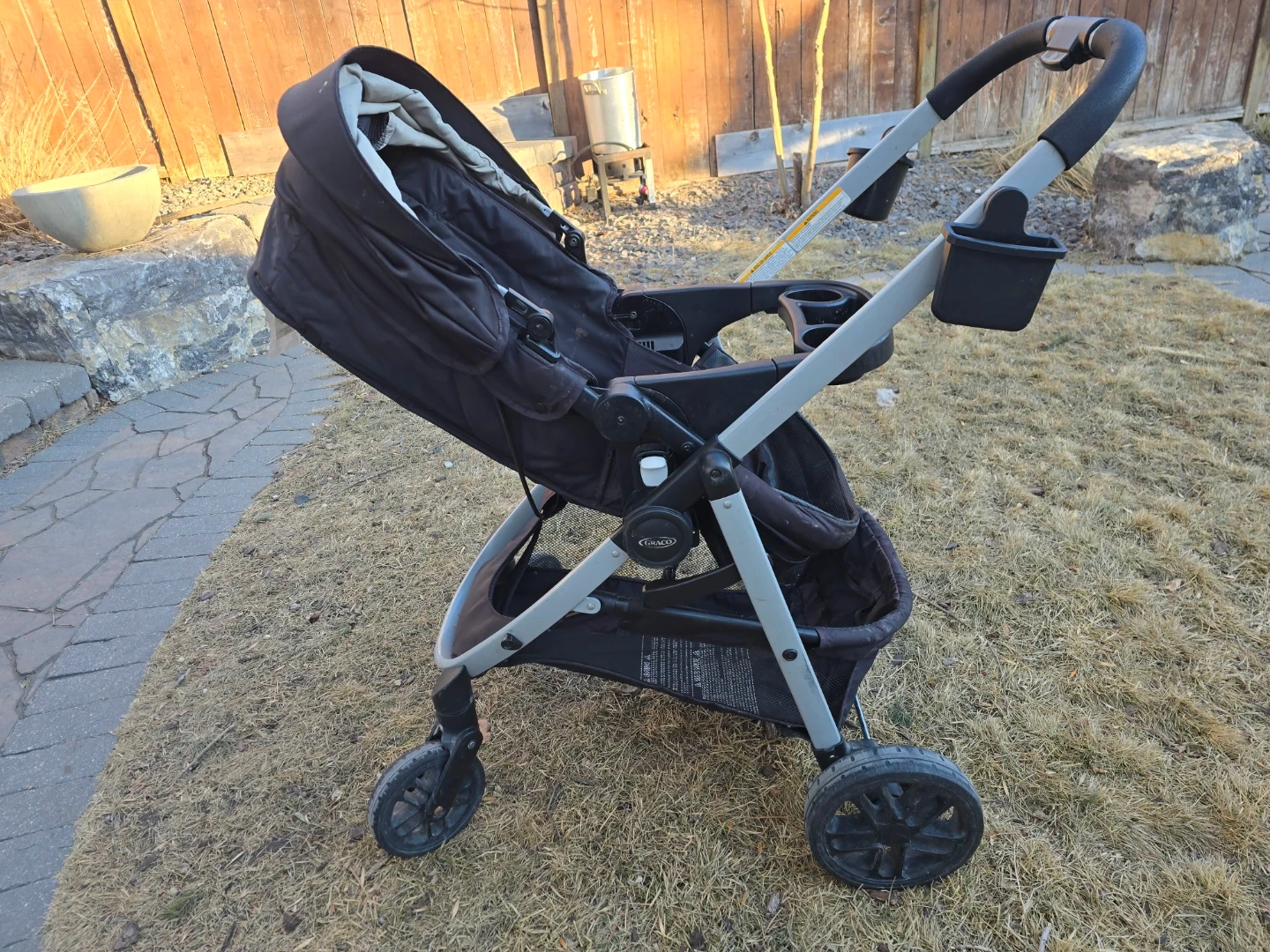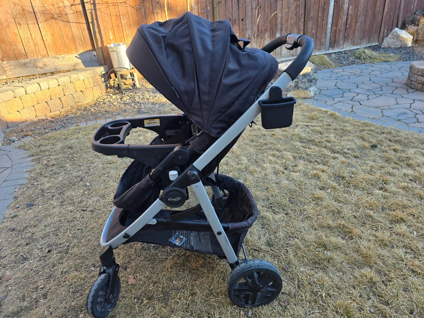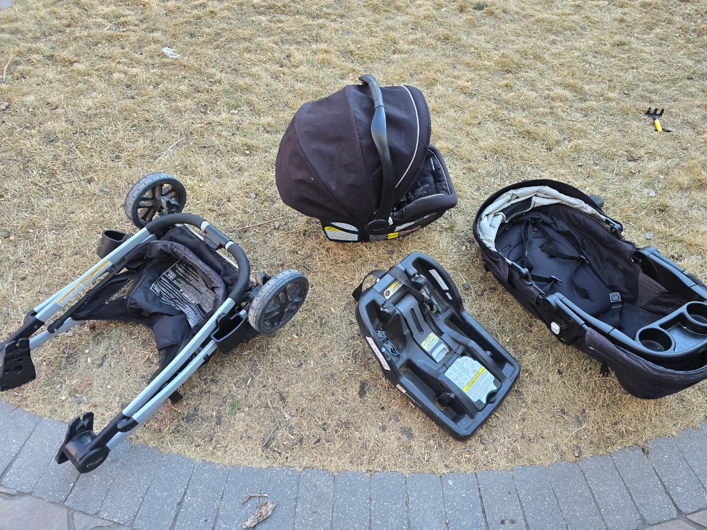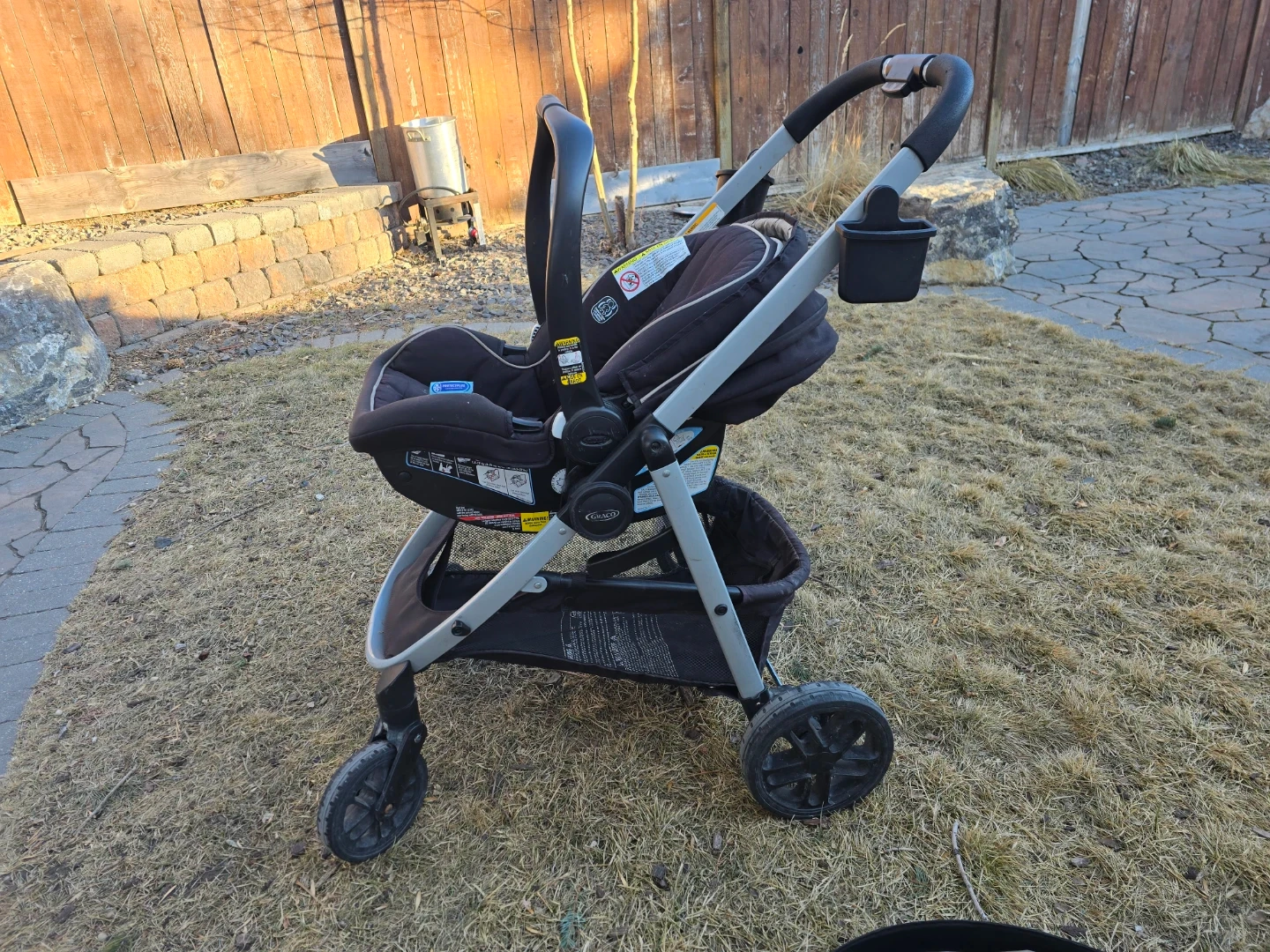 Graco car seat with base and stroller combo. Black colour. This system makes travelling with a baby super convenient! Multiple ways to set up the seats. Reg price $750.