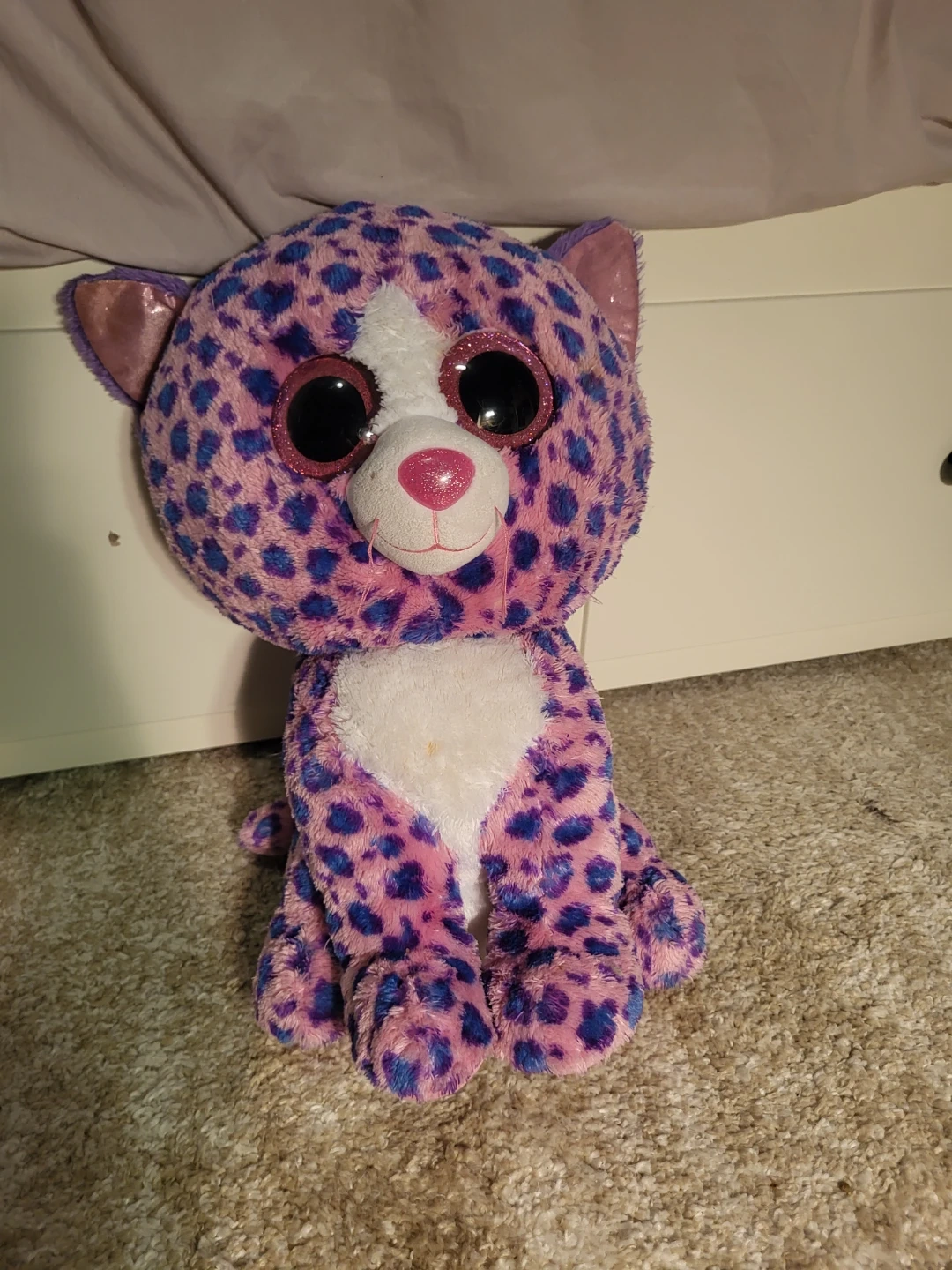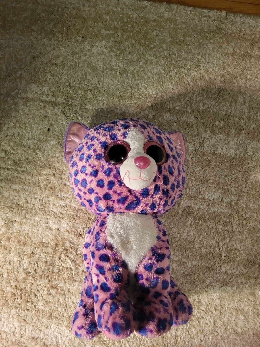Super cute Ty Beanie Boo cheetah plush. Clementine is pink with purple spots and big sparkly eyes. It's soft and cuddly, perfect for playtime or display! This plush is ready for a new home. This beanie boo is 18 inches