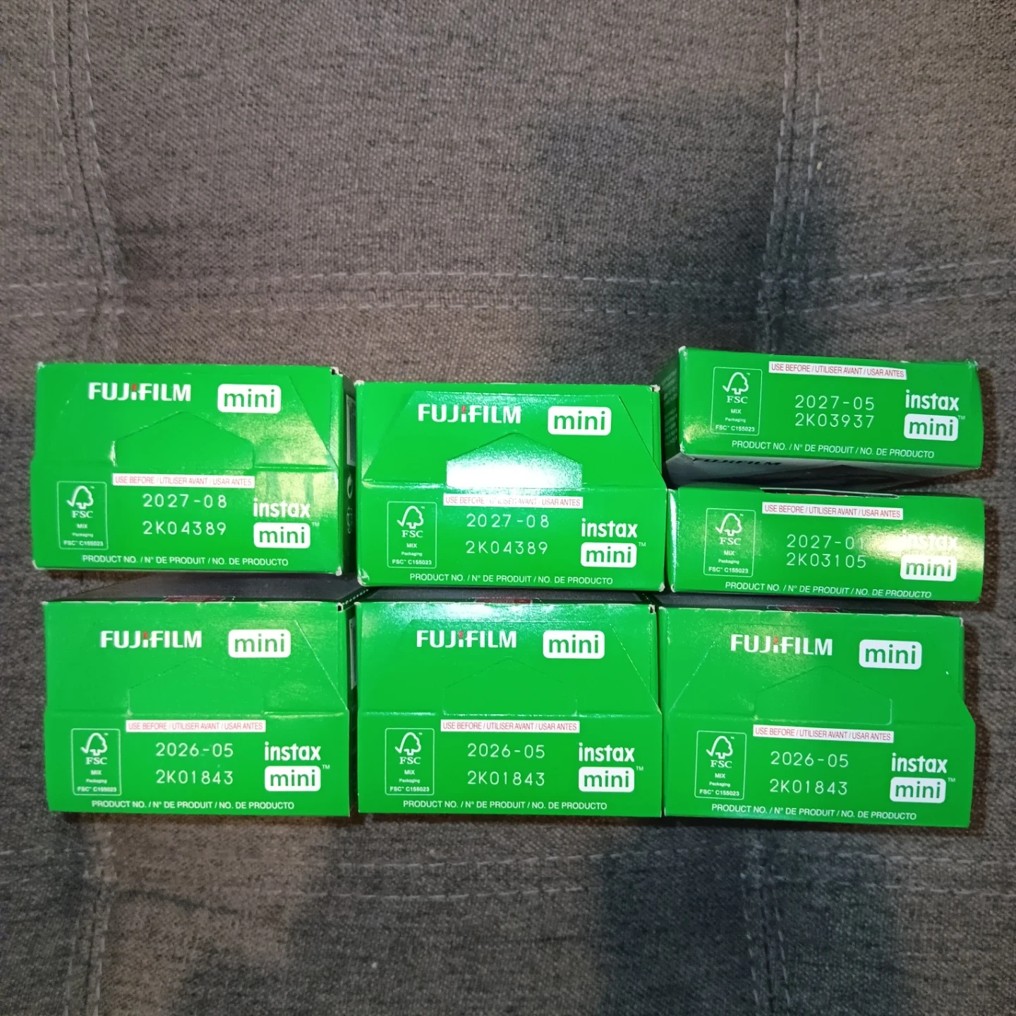 This listing includes multiple packs of Fujifilm Instax Mini instant film. You'll find 20-sheet packs and 10-sheet packs available. These are standard Instax Mini films, compatible with all Instax Mini cameras. Expiration dates vary by pack, with most expiring between 2026 and 2027.