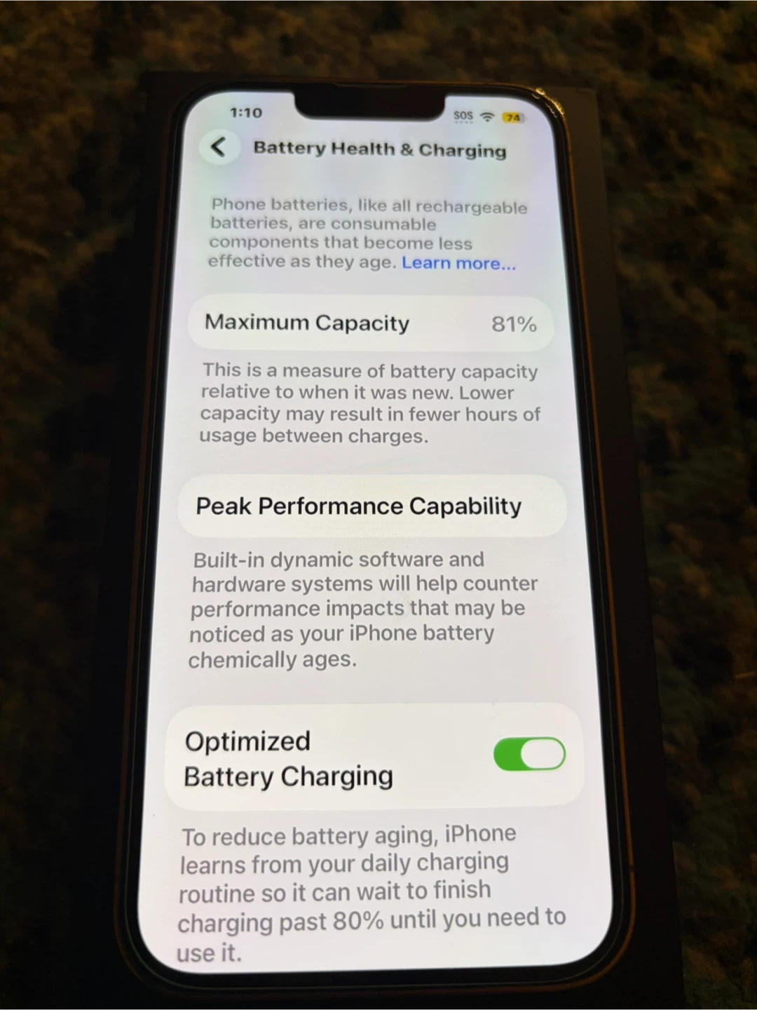 128 GB / glass screen protector since day 1 / Phone in excellent condition / all settings work / try before you buy / Battery 81% / Comes with original box and a few cases