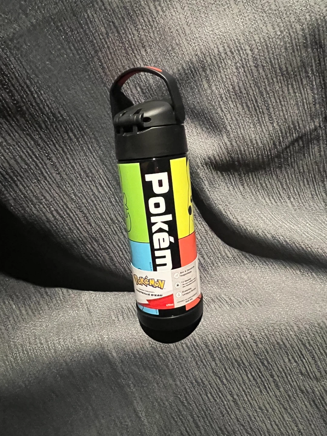 This Thermos water bottle features a fun Pokémon design with Pikachu and other characters. It's perfect for school lunches or outdoor adventures. The bottle has a capacity of 470ml.