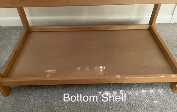 *Second shelf has child's smiley face drawing as shown and imperfections