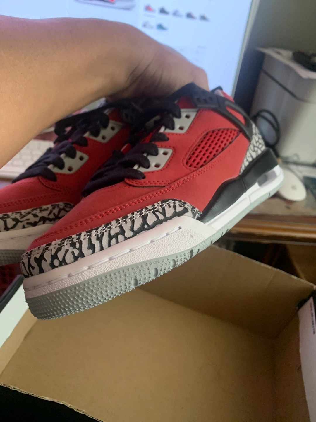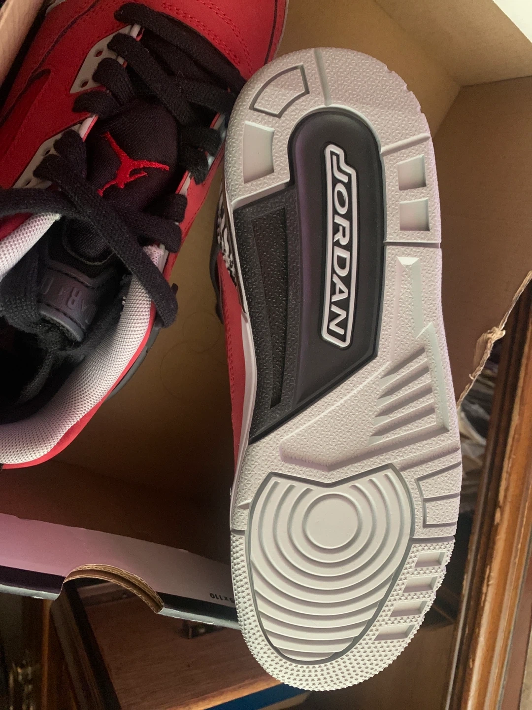 Selling a pair of Jordan Spizike Low (GS) in a vibrant gym red, black, wolf grey colorway! These shoes are in size 4Y and come with the original box. A stylish and comfortable choice for your kiddo!