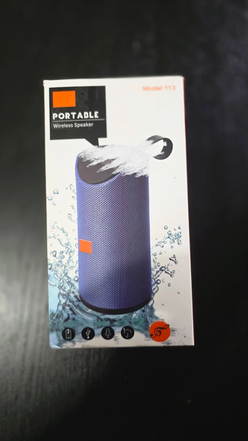 This is a portable wireless speaker. It's splashproof and has a playing time of 3-6 hours. It includes mic for hands-free phone calls. This speaker is great for use anywhere!