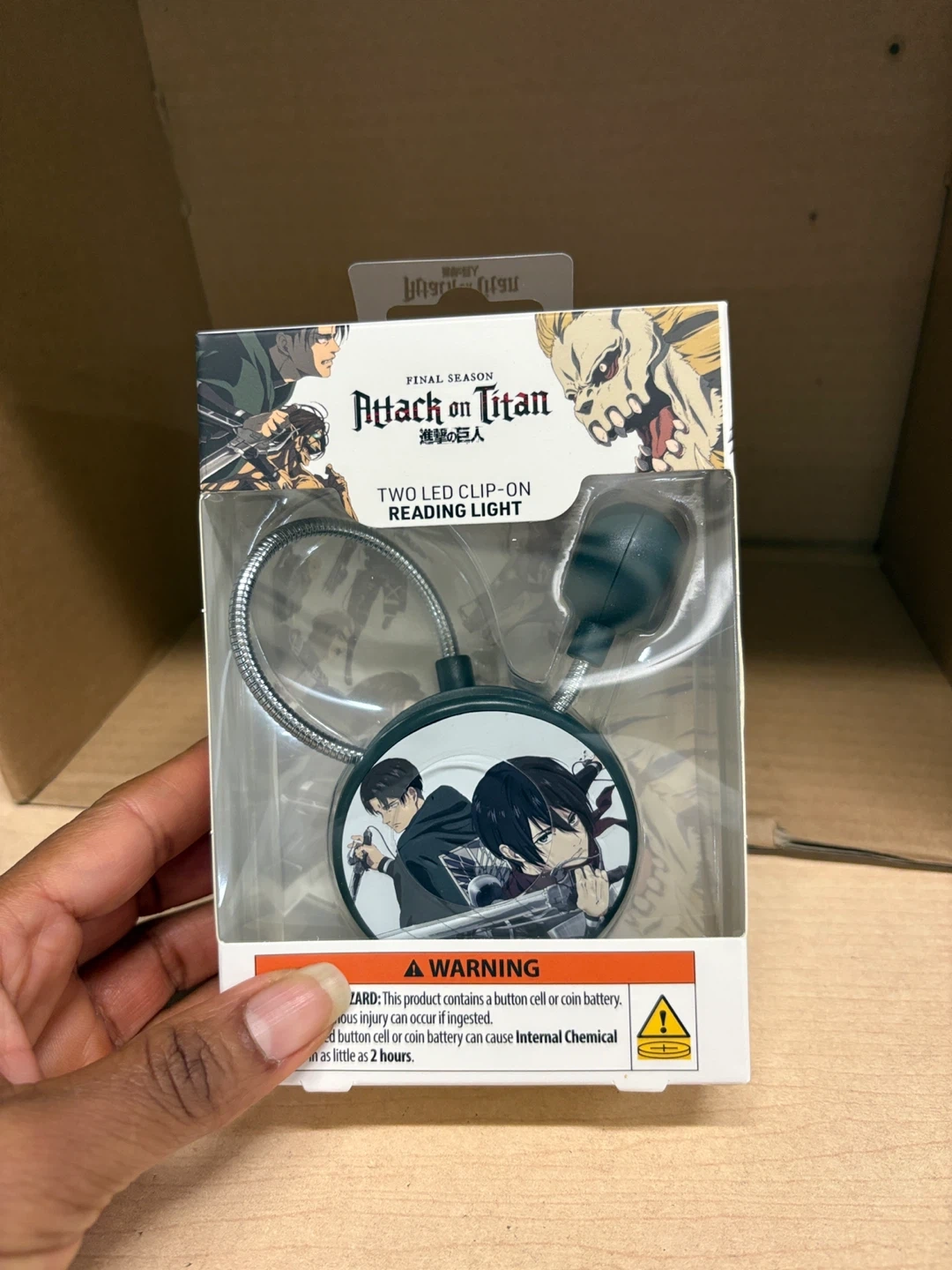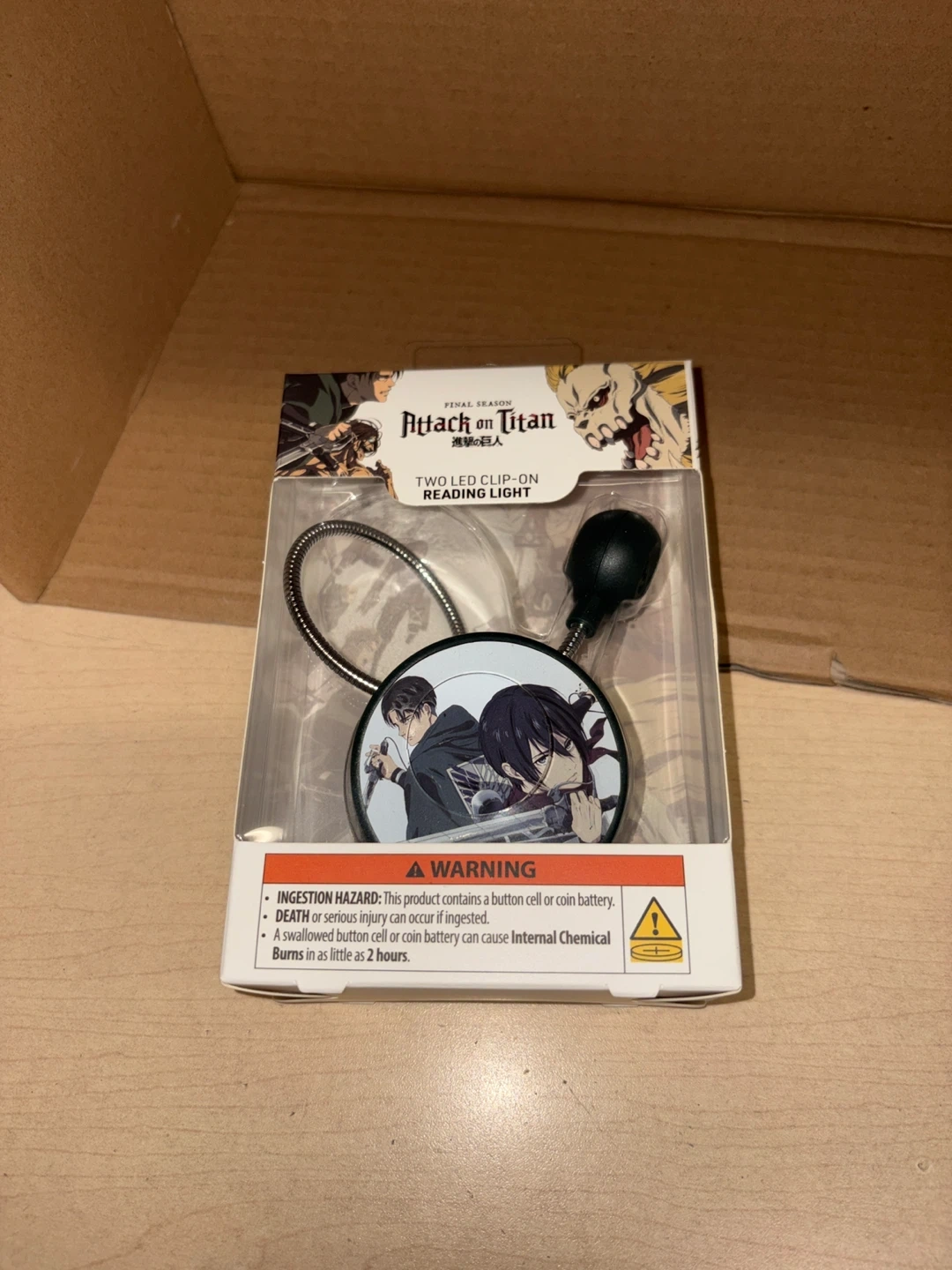 Selling a brand new Attack on Titan Two LED Clip-on Reading Light! It's still in its original packaging, never been used. Perfect for late-night reading or adding a touch of anime to your space