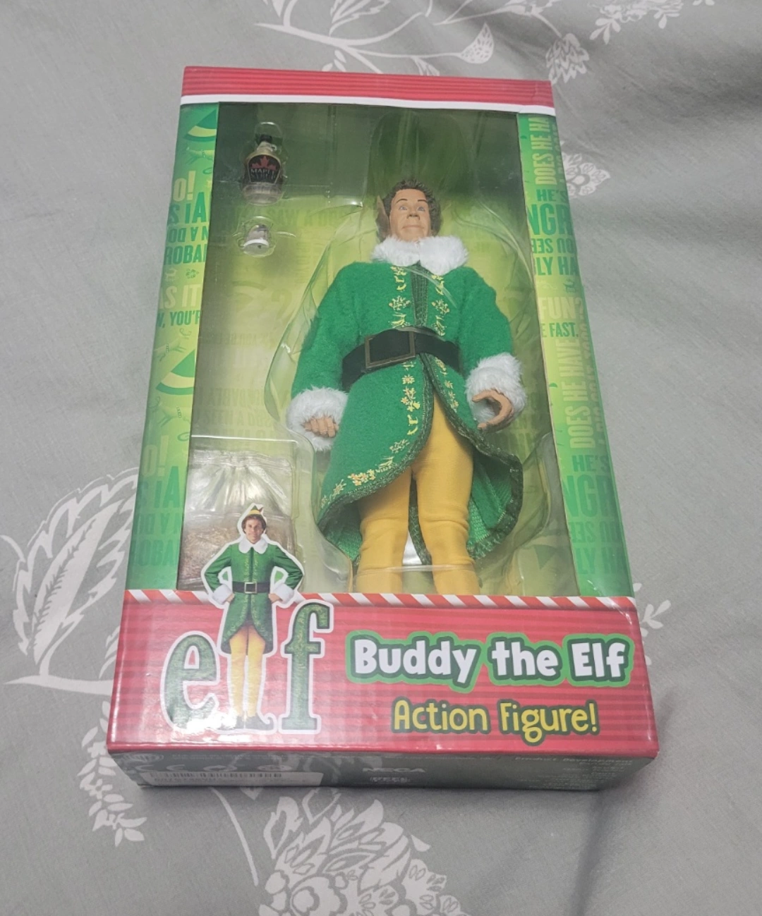 603Buddy the Elf action figure. Collectible figure from the movie Elf. Includes accessories. New in box. Pick up only, Don Mills and York Mills area.
