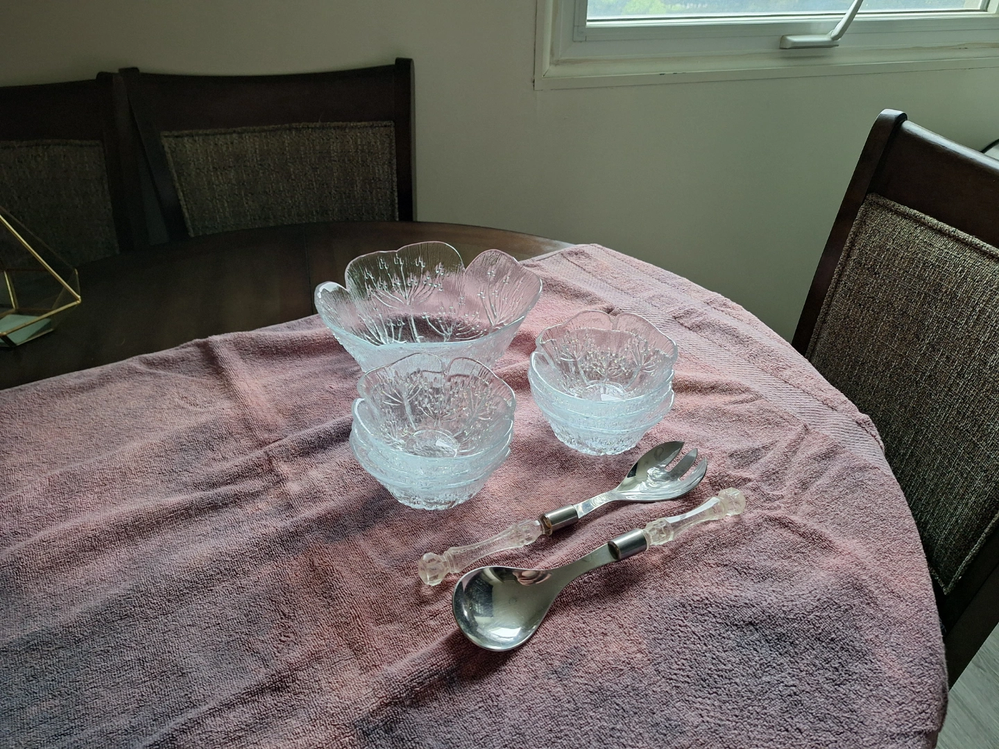 Vintage Iittala Kastehelmi Glass Serving Bowls & Salad Servers