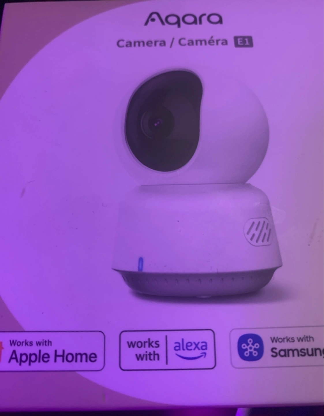 Bnib Aqara Camera E1. Works with Apple Home, Alexa, and Samsung SmartThings. Compact design. Easy setup. Excellent home security.