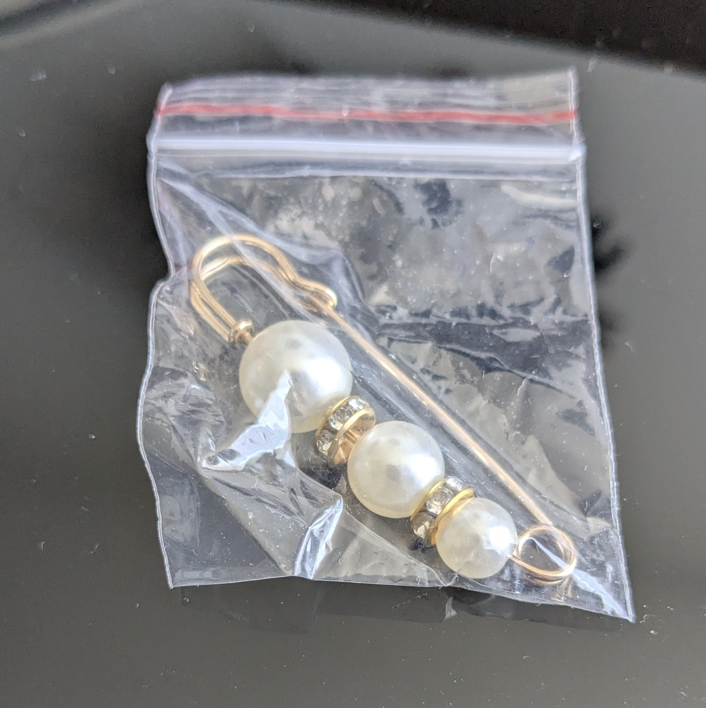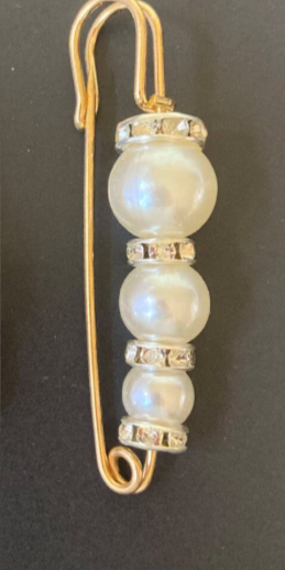 FREE NEW Beautiful gold-toned safety pin. Features three faux pearls and rhinestones. Perfect for adding a touch of elegance to any outfit. or to use as an elegant closure for a blouse or sweater.