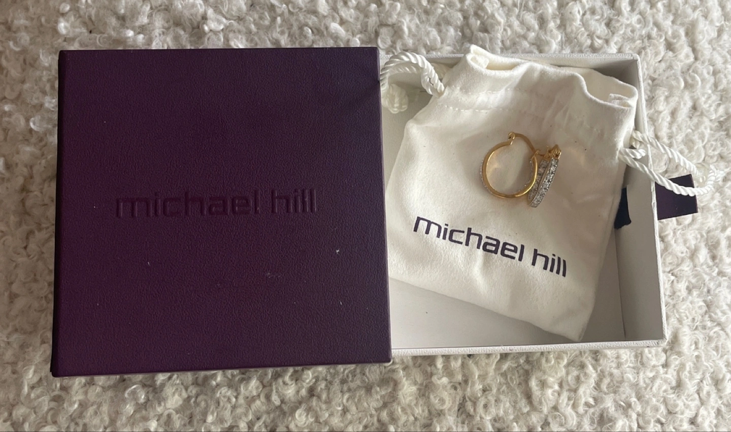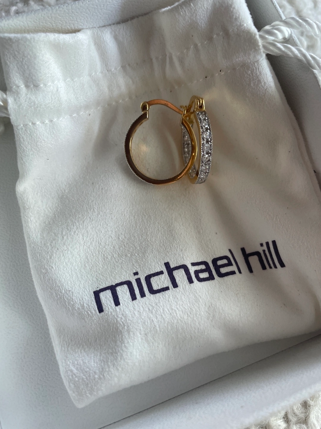 Beautiful gold hoop earrings. Small cubic zirconia accents. Comes in original Michael Hill box and pouch. Elegant design, perfect for everyday wear.