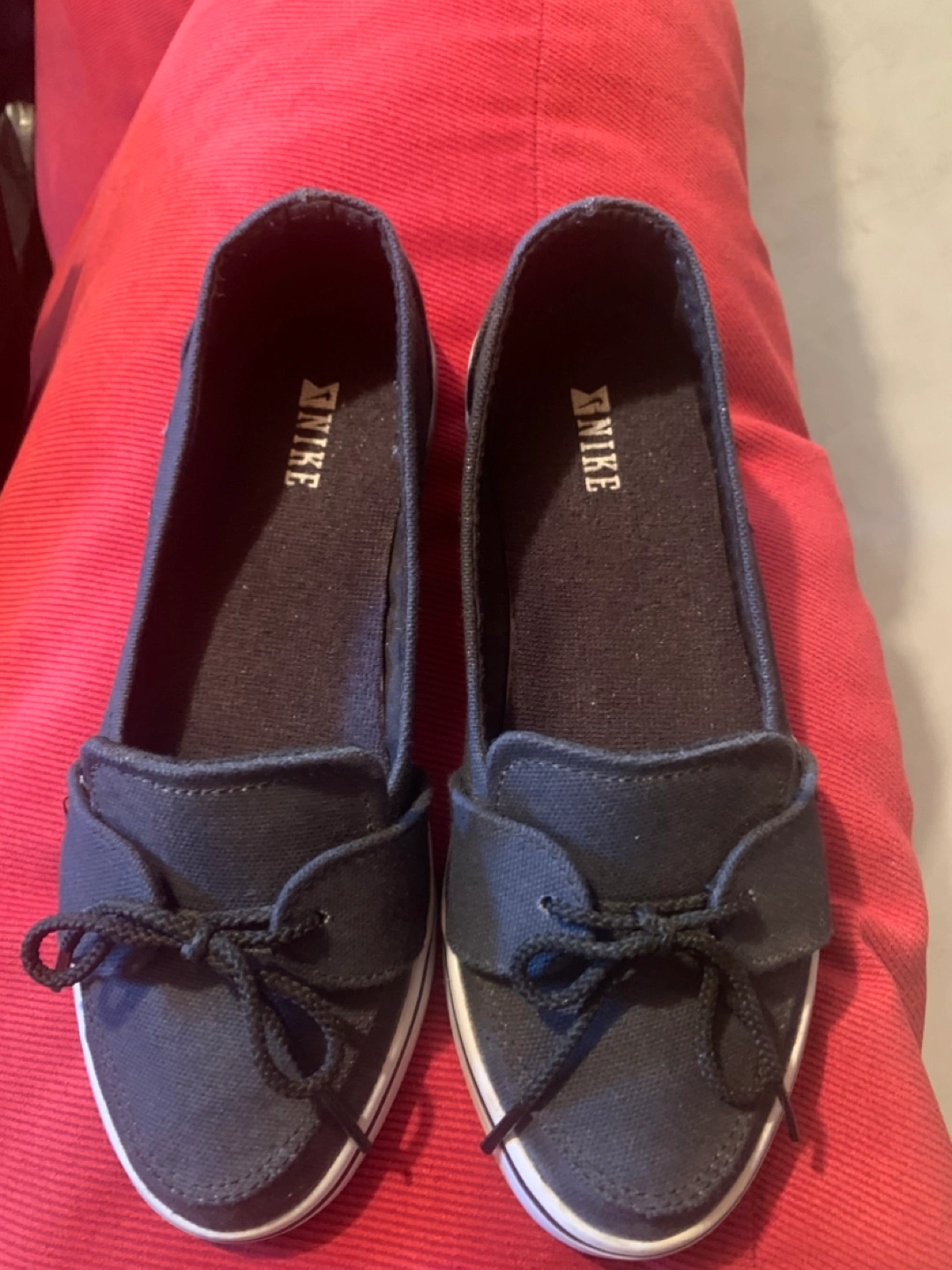 Lace detail at the front. White trim. Comfortable and stylish. Worn once.