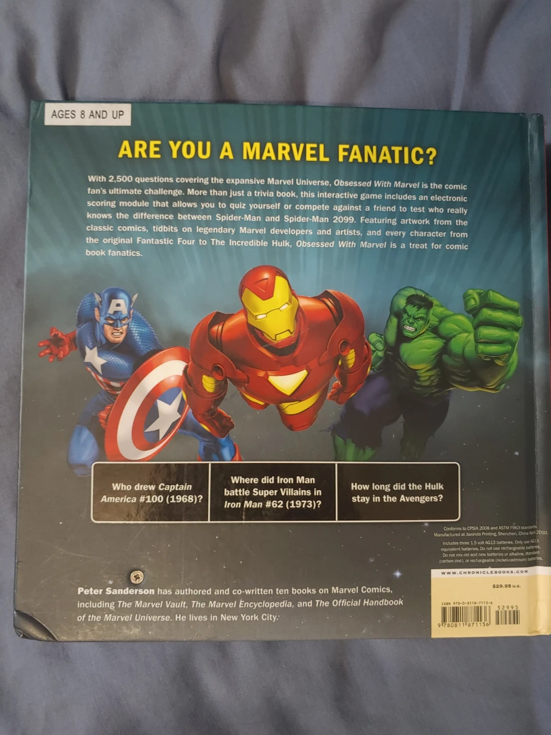 This latest title in the wildly successful Obsessed With series is the Marvel fanatic's ultimate challenge. More than just a trivia book, this interactive game includes an electronic scoring module that allows readers to quiz themselves or compete against a friend. With 2,500 questions covering the expansive Marvel Universe, it's easy to test who really knows the difference between Spider-Man and Spider-Man 2099. Featuring every character from the original Fantastic Four to Nick Fury's Howling Commandos to The Incredible Hulk, tidbits on legendary Marvel developers and artists, and artwork from the classic comics,Obsessed With Marvel is a treat for every comic book fan.