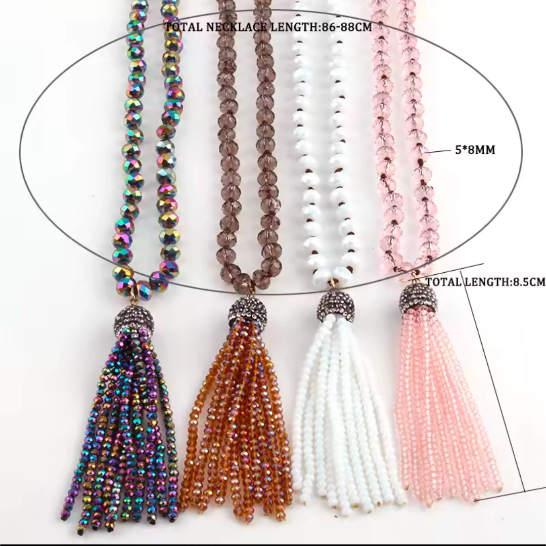 🏒FREE NEW LONG Dark Teal Crystal Beaded Tassel Turkush Necklace