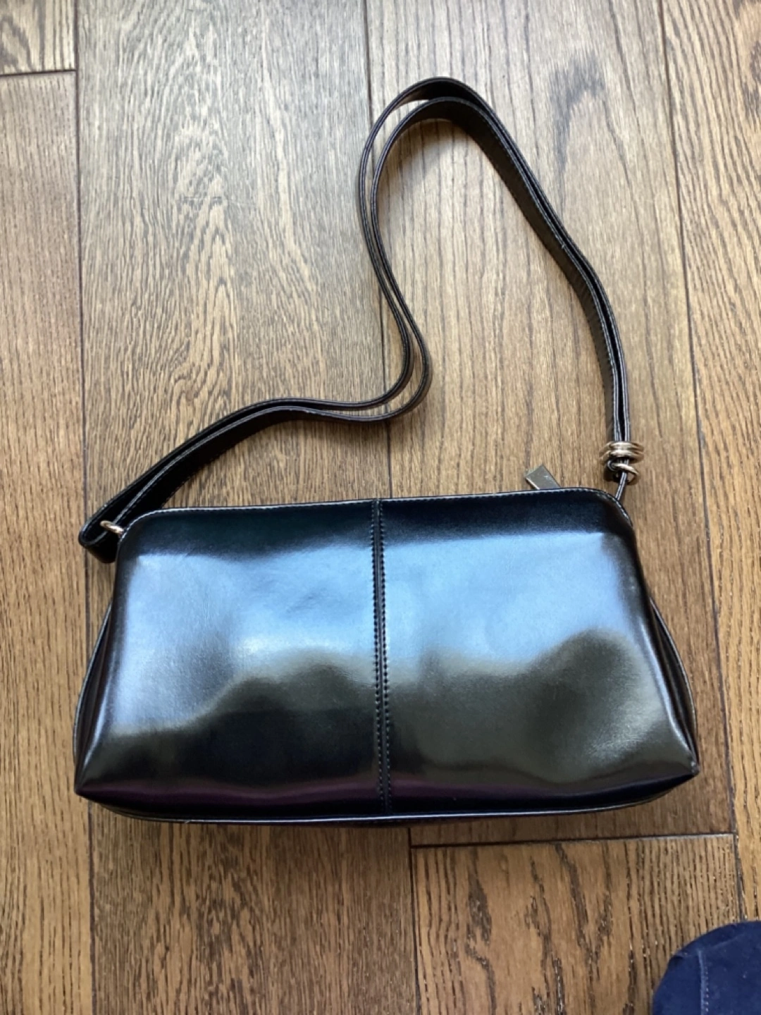 Small Black Handbag, some signs of wear but I have touched most of them up - see last pic for wear at bottom of strap, approximate size 10” X 6” X 3”, inside zip pocket, strap is adjustable, selling “as is”, $5.