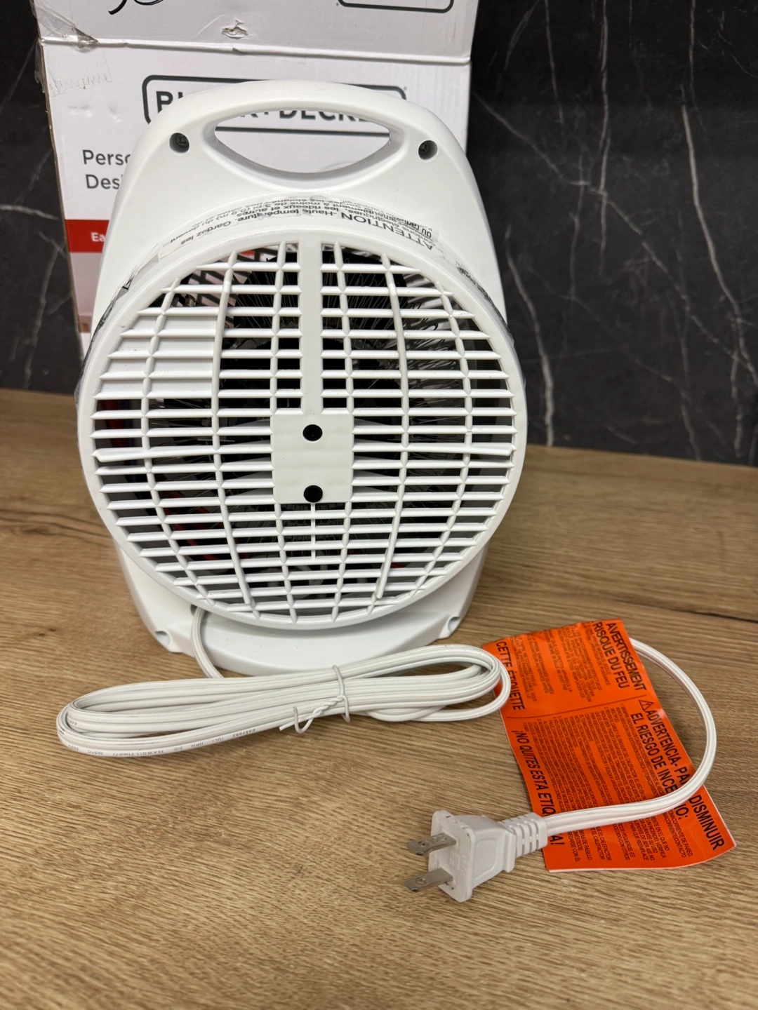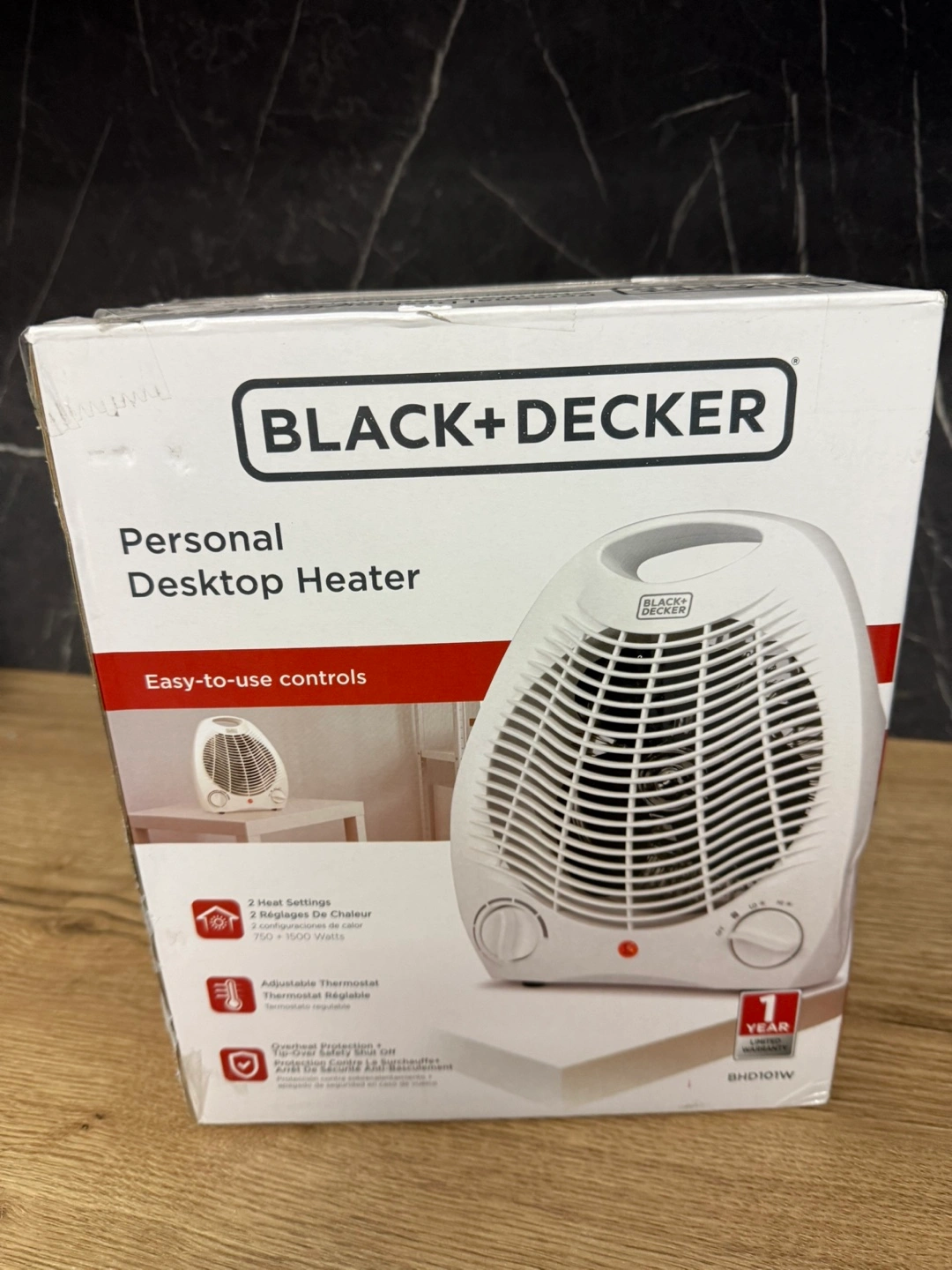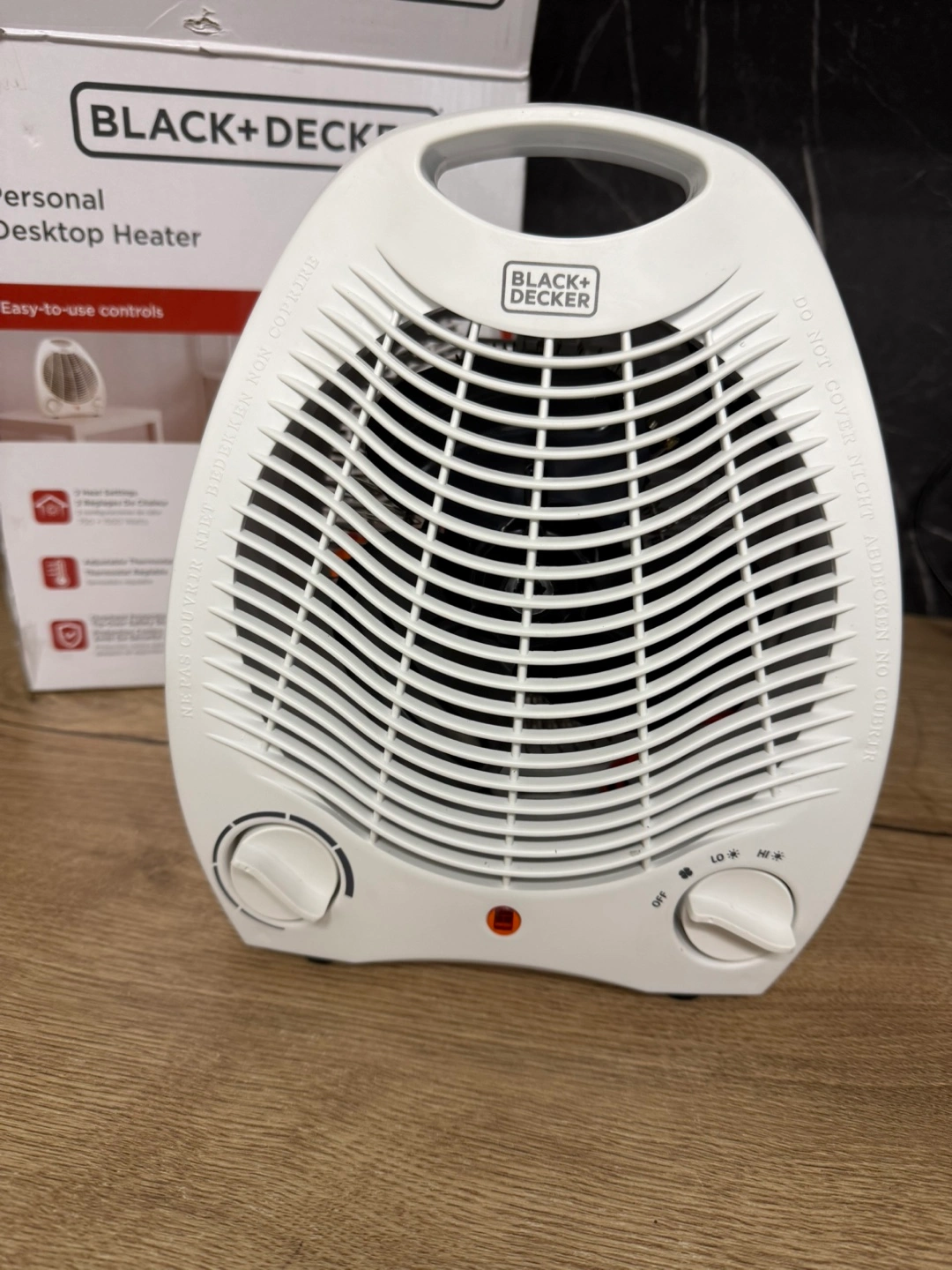 75PORTABLE DESKTOP HEATER– This portable heater is ideal for smaller spaces, weighing an impressive 2.3 lbs. HEATER + FAN COMBO– With this unit, you get two for the price of one: a portable space heater and quality fan for optimal air circulation! Compact but powerful, this office heater (8.4” x 5.2” x 10”). ADJUSTABLE THERMOSTAT CONTROL– This room heater comes with three settings: LOW HEAT (750 Watts), HIGH HEAT (1500 Watts), or FAN. Just plug in your new small heater for indoor use with the 6.5 ft. power cord and enjoy a cozy atmosphere. DESIGNED FOR SAFETY– This fantastic space heater comes with overheat protection and auto tip-over shutoff, which lets you rest easy while staying comfortable. Pick up in Mississauga near the intersection of Highways 401 and 403