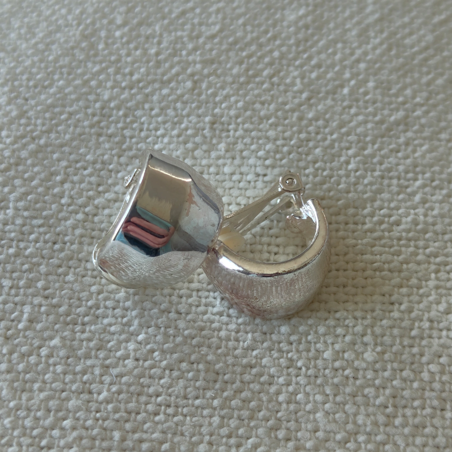 Pair of polished silver tone clip on earrings. Simple, timeless design. Good condition. Super shiny 😀