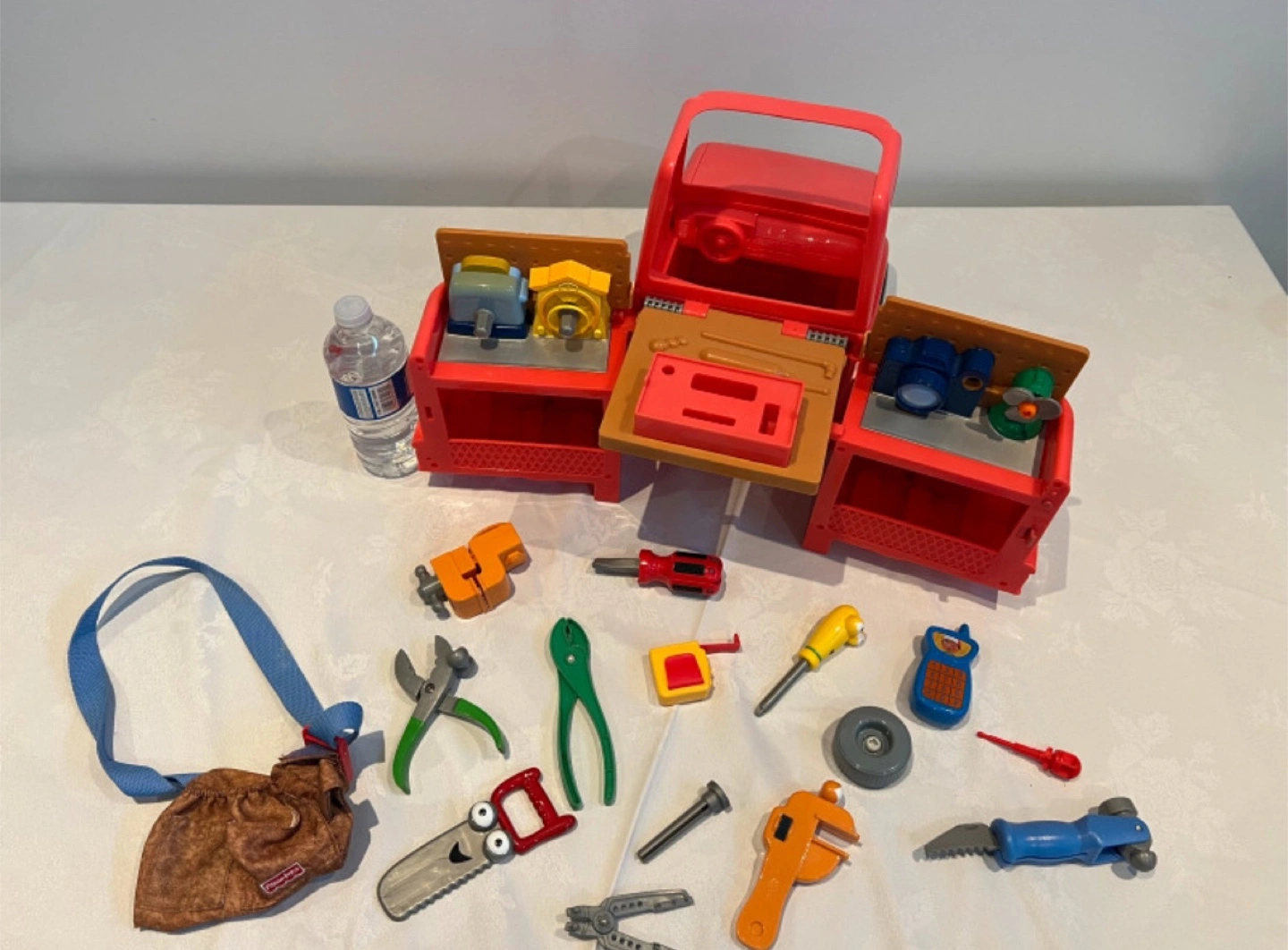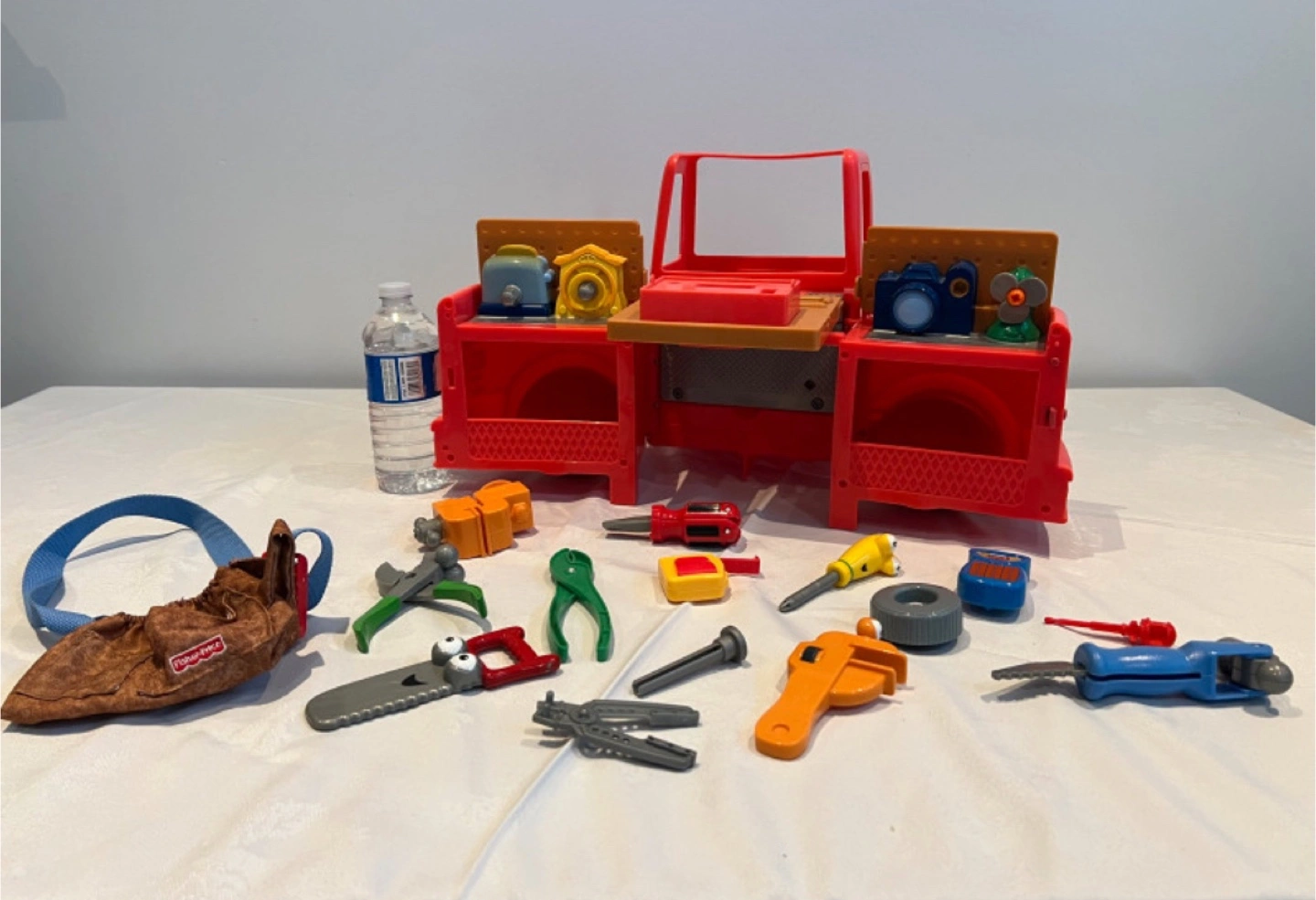 108Handy Manny Tool Toy Set Red tool bench playset. Multiple tools included. Toy tools in carrying case. Fun for imaginative play.