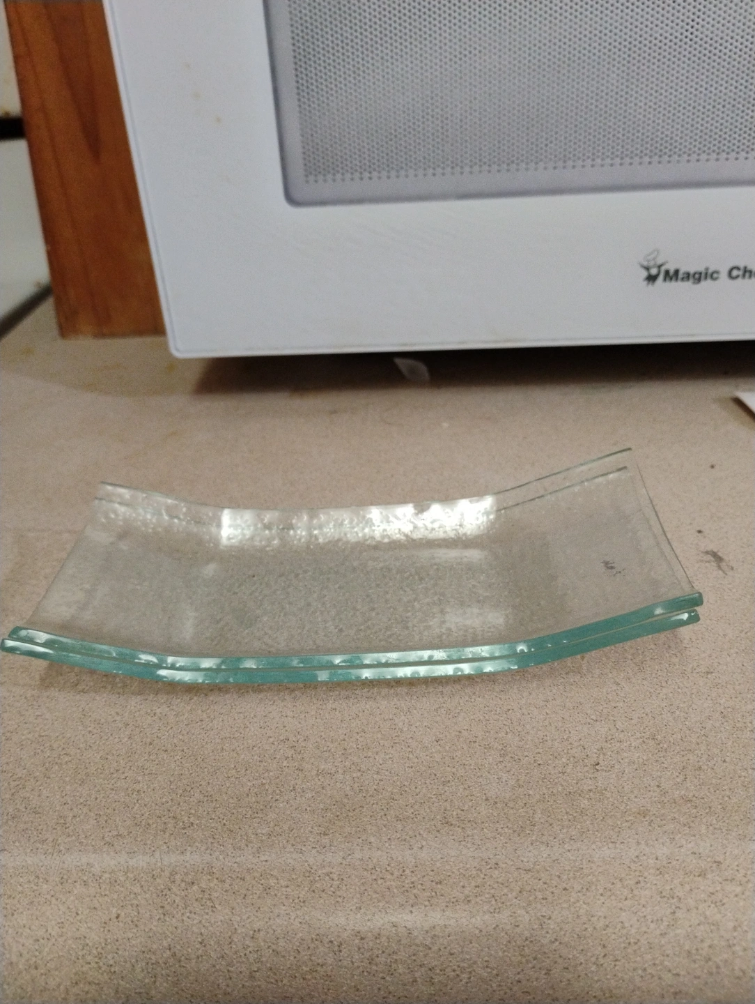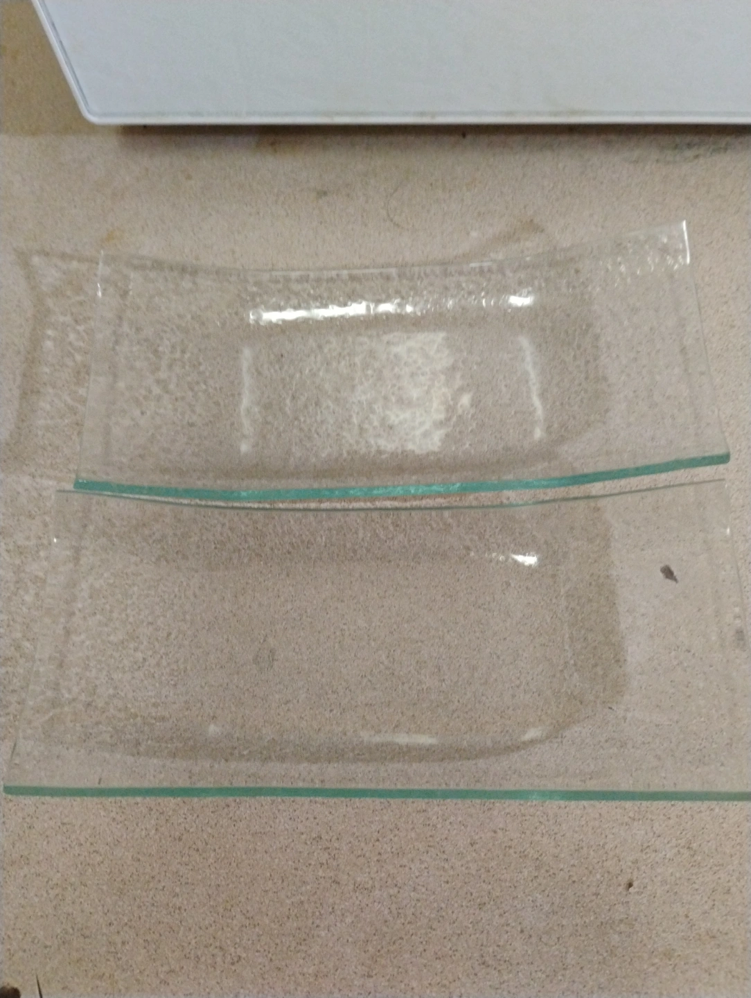 531Two clear glass rectangular dishes. Slightly curved edges. Textured surface. Perfect for serving appetizers or as decorative pieces. Great for sushi
