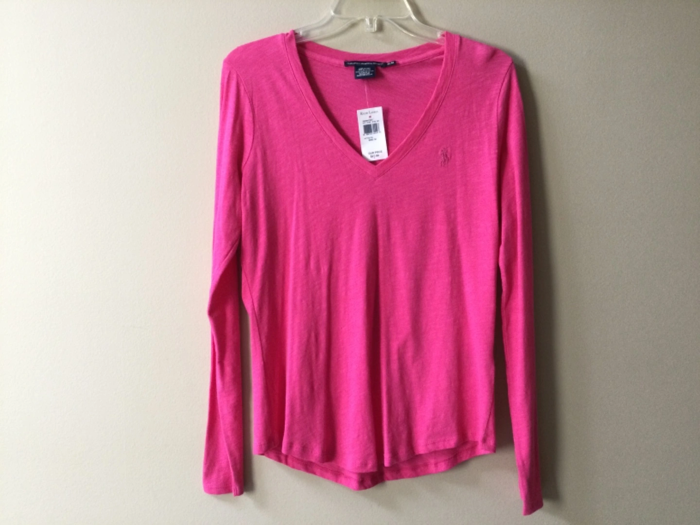 Hot pink long-sleeve shirt. V-neck. 100% cotton. Size Medium. New with tags. Selling it for $15 Pickup in North York near Don Mills & Finch
