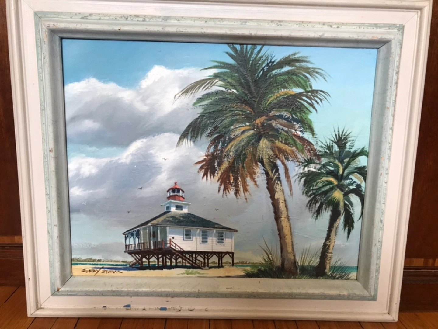 For the Florida Snowbirds. Beautiful oil painting of the Boca Grande Lighthouse on Gasparilla Island. Frame has a bit of flaking. Could touch up or leave as is. Yonge/Davisville pick up.