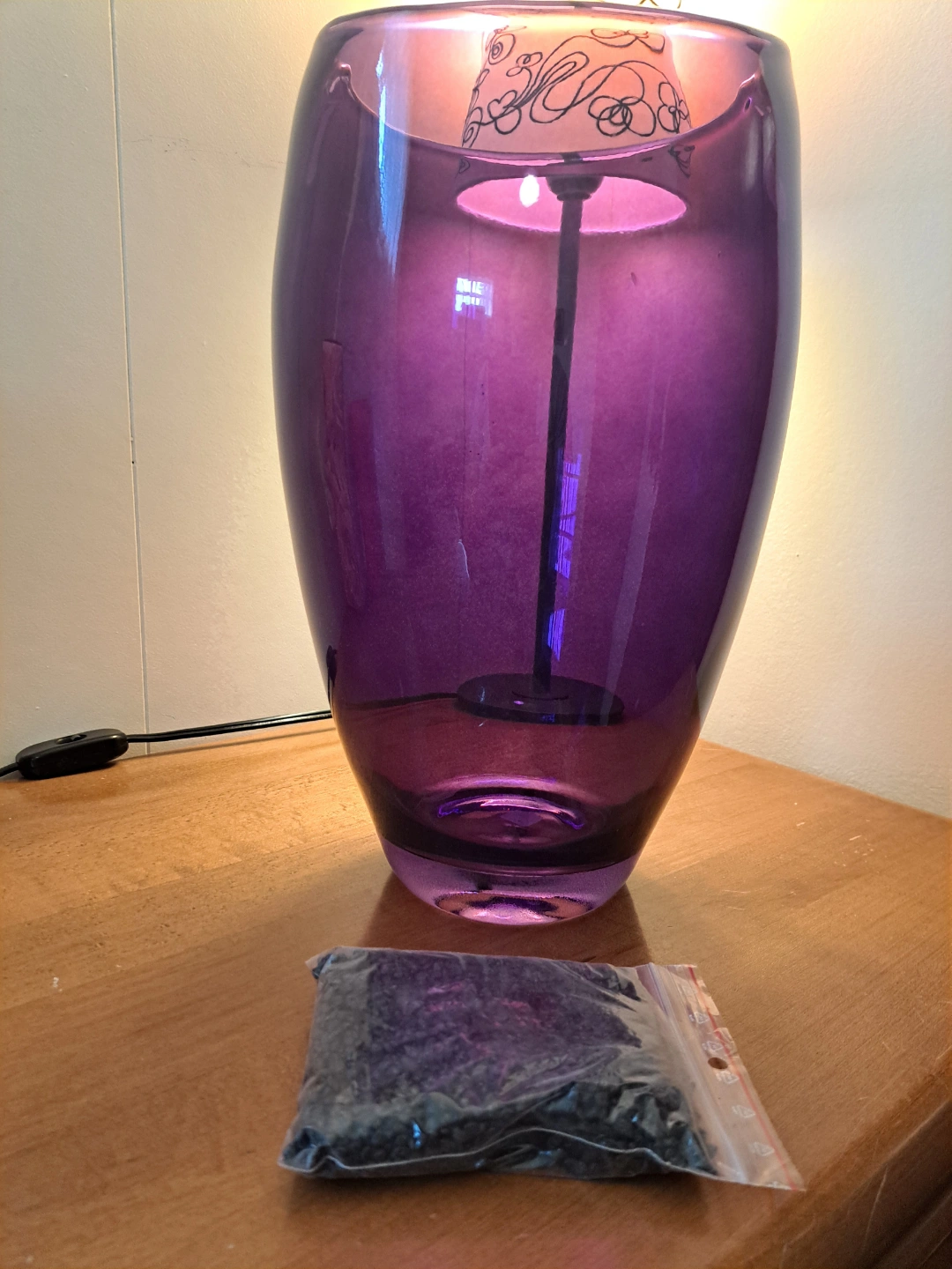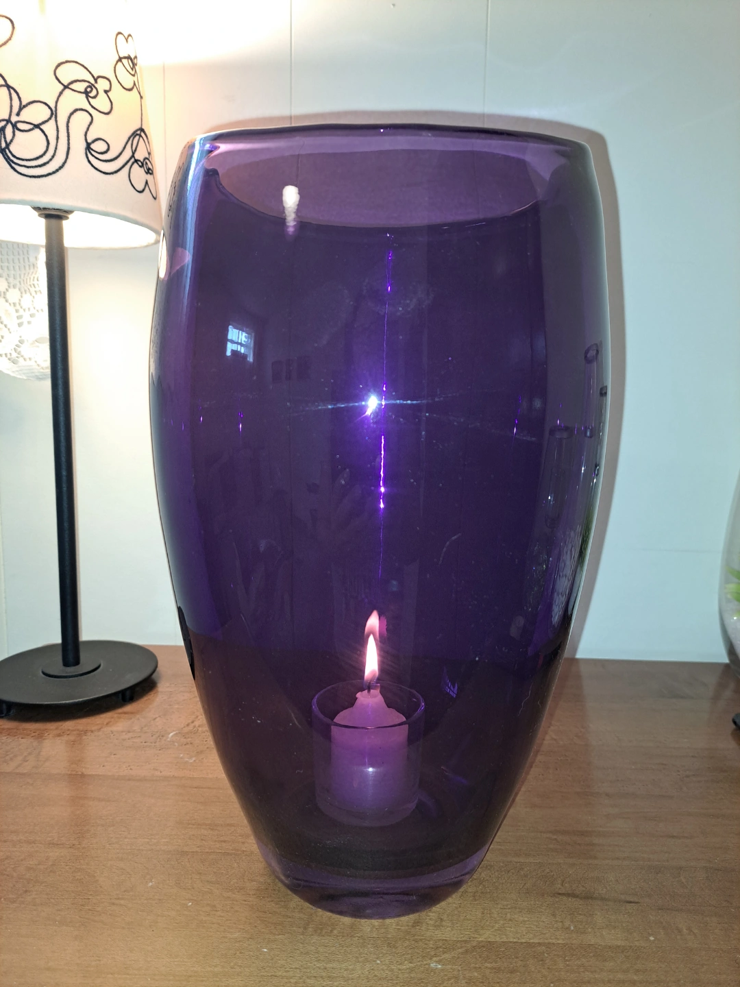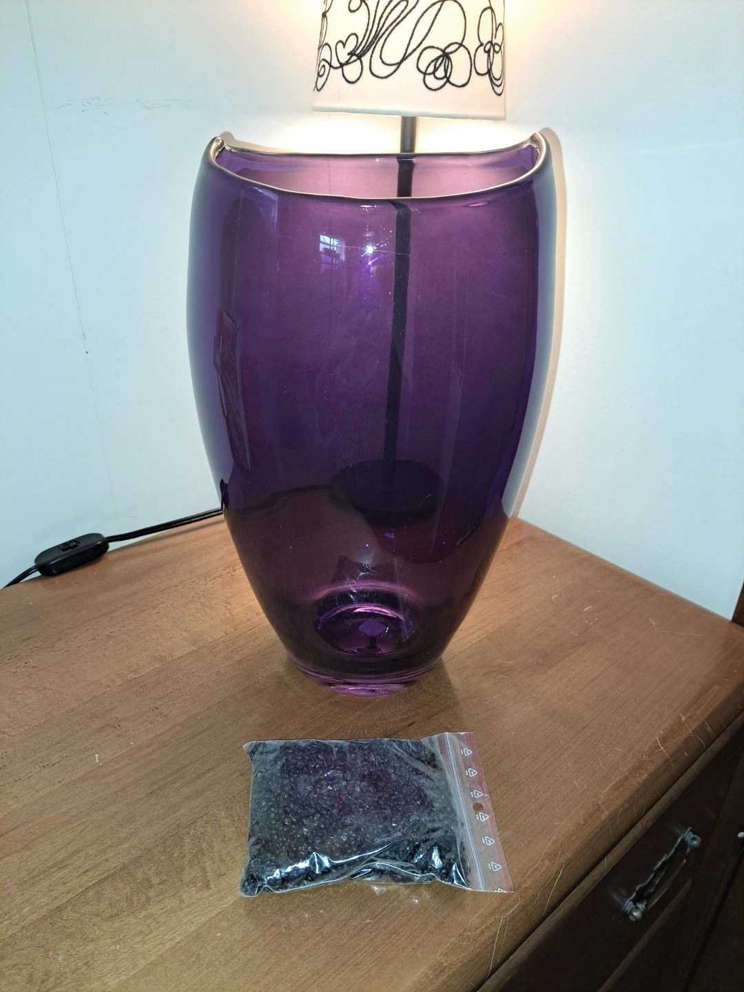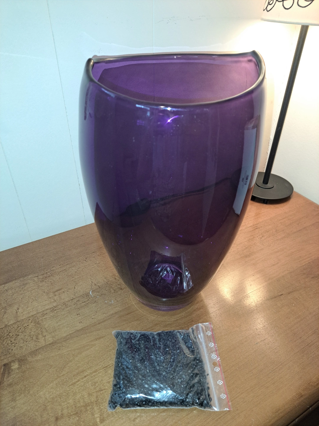 Partylite Beautiful large purple glass vase. Perfect for displaying flowers or as a decorative piece. Includes a small bag of dark filler.