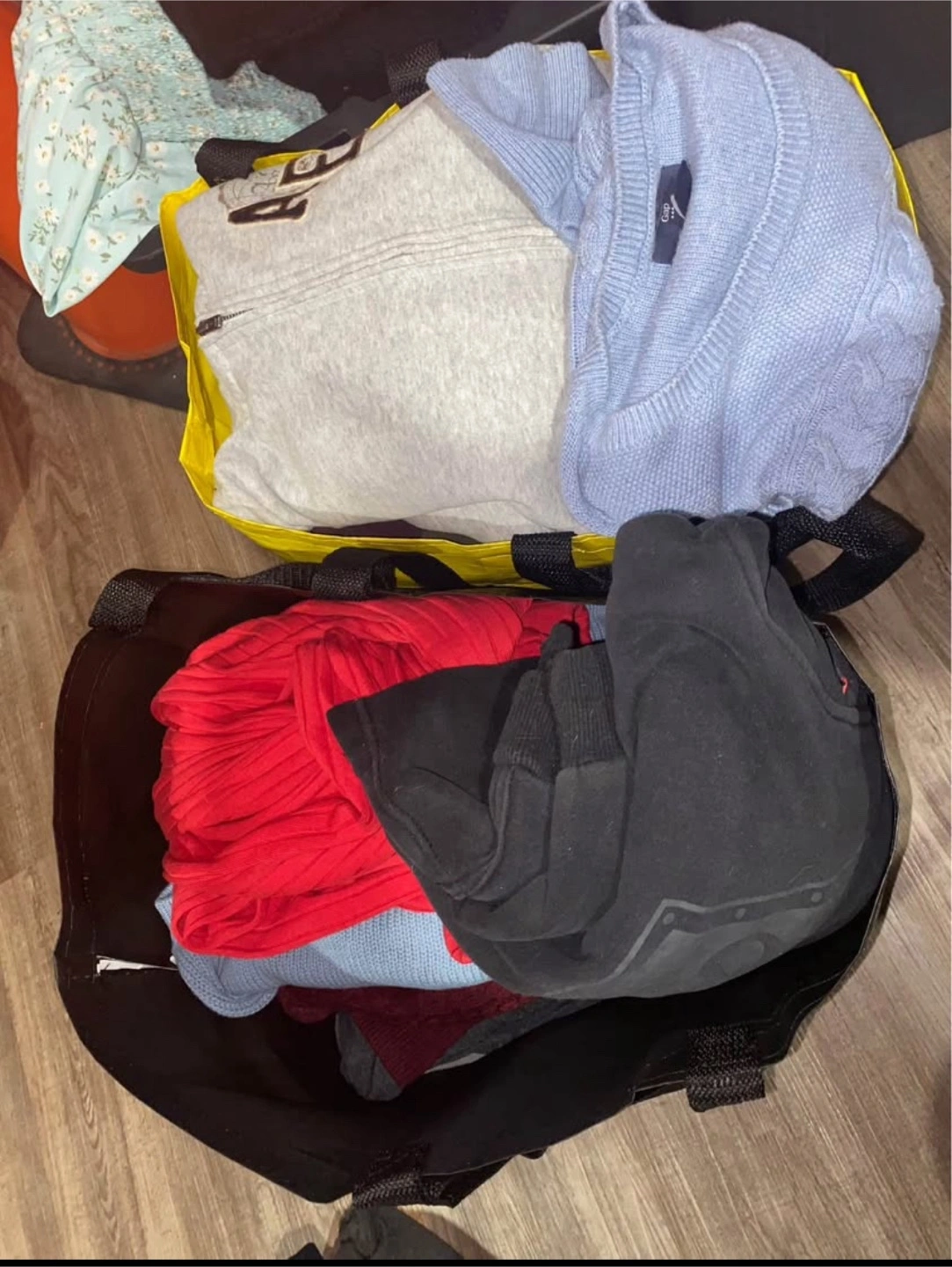 Two large bags of clothes all size medium women’s clothing. Dresses, Pants, Skirts, Tops, Sweaters, Hoodies. Brands such as Garage Aeropostale H&M Nike Adidas American Eagle TNA Lulu Maurice’s and Forever 21. USED and NEW clothing some clothes still have tags on them and have never been worn some clothes have been worn but all in very good condition.
