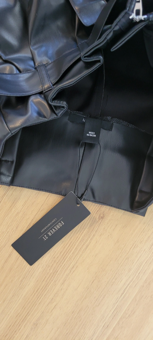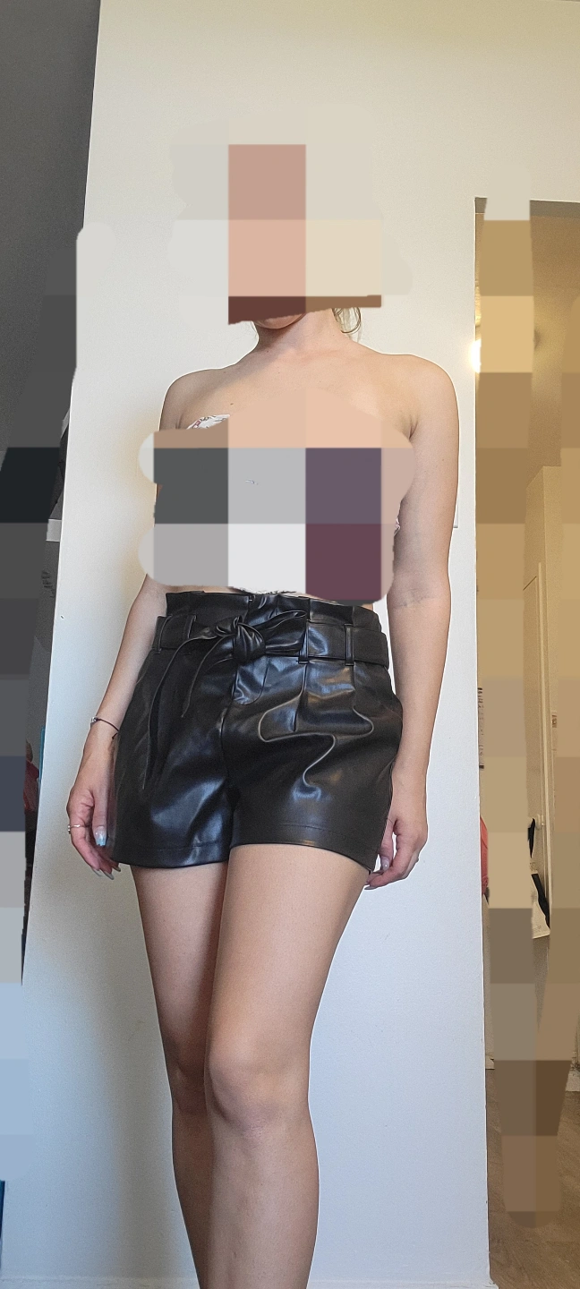 Women's black faux leather shorts. Size small. High waisted with a tie belt. Pleated detail.