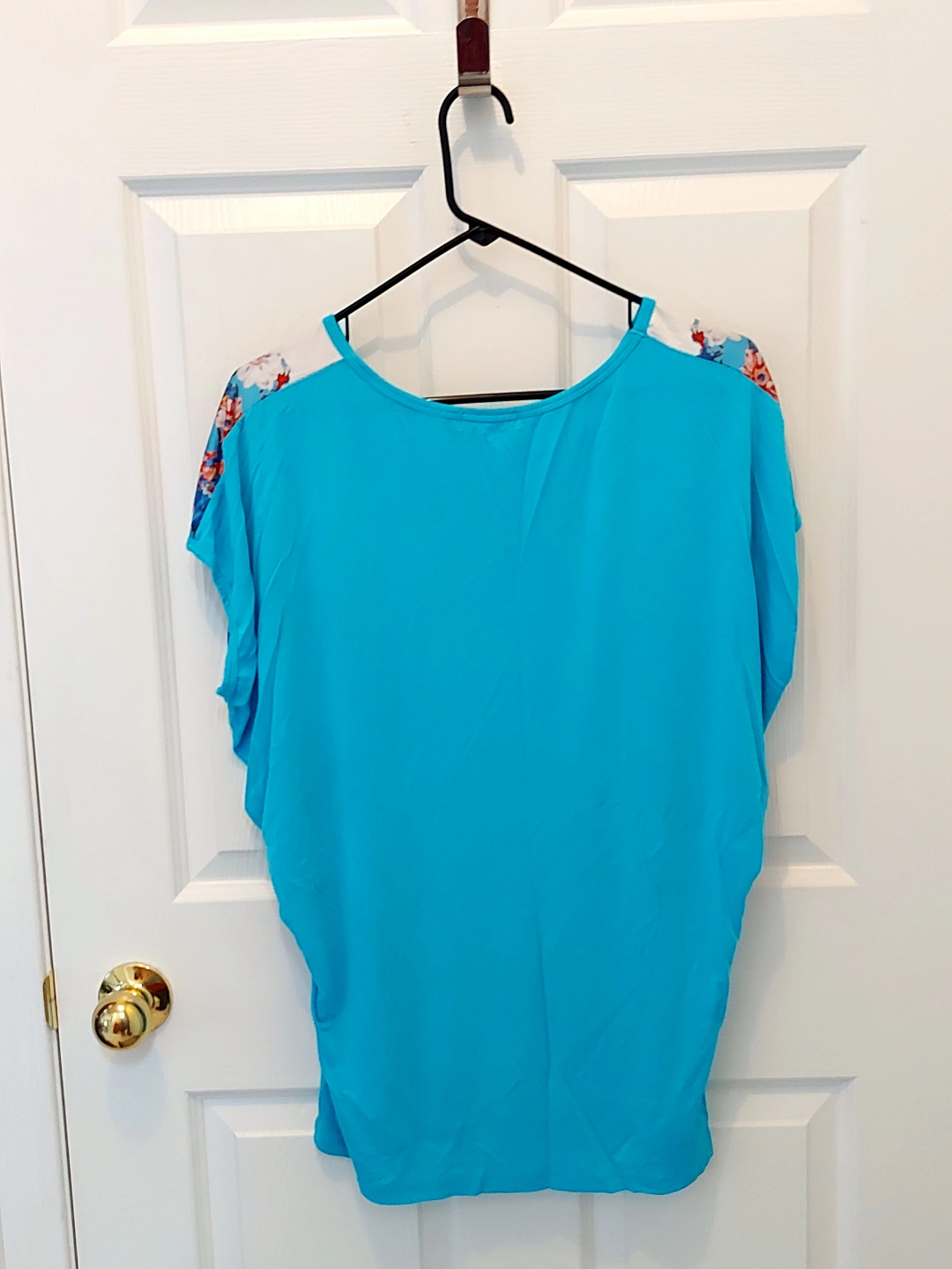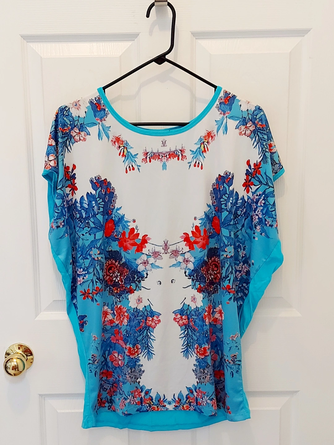 Add a cheerful touch to your look with this vibrant blue shirt in size medium. Featuring delicate white details and subtle floral accents, this top strikes the perfect balance between casual and classy. Whether you're heading to work, a casual lunch, or a weekend outing, this shirt pairs well with jeans or slacks for a fresh, put-together look.
