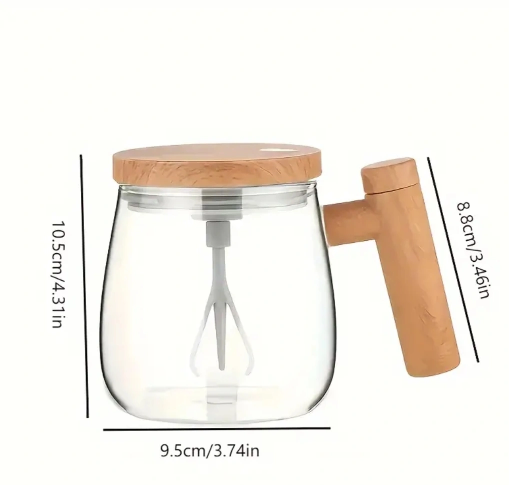๐400ml capacity electric milk frother. Clear glass container. Wooden lid and handle. Includes whisk attachment. Simple operation.