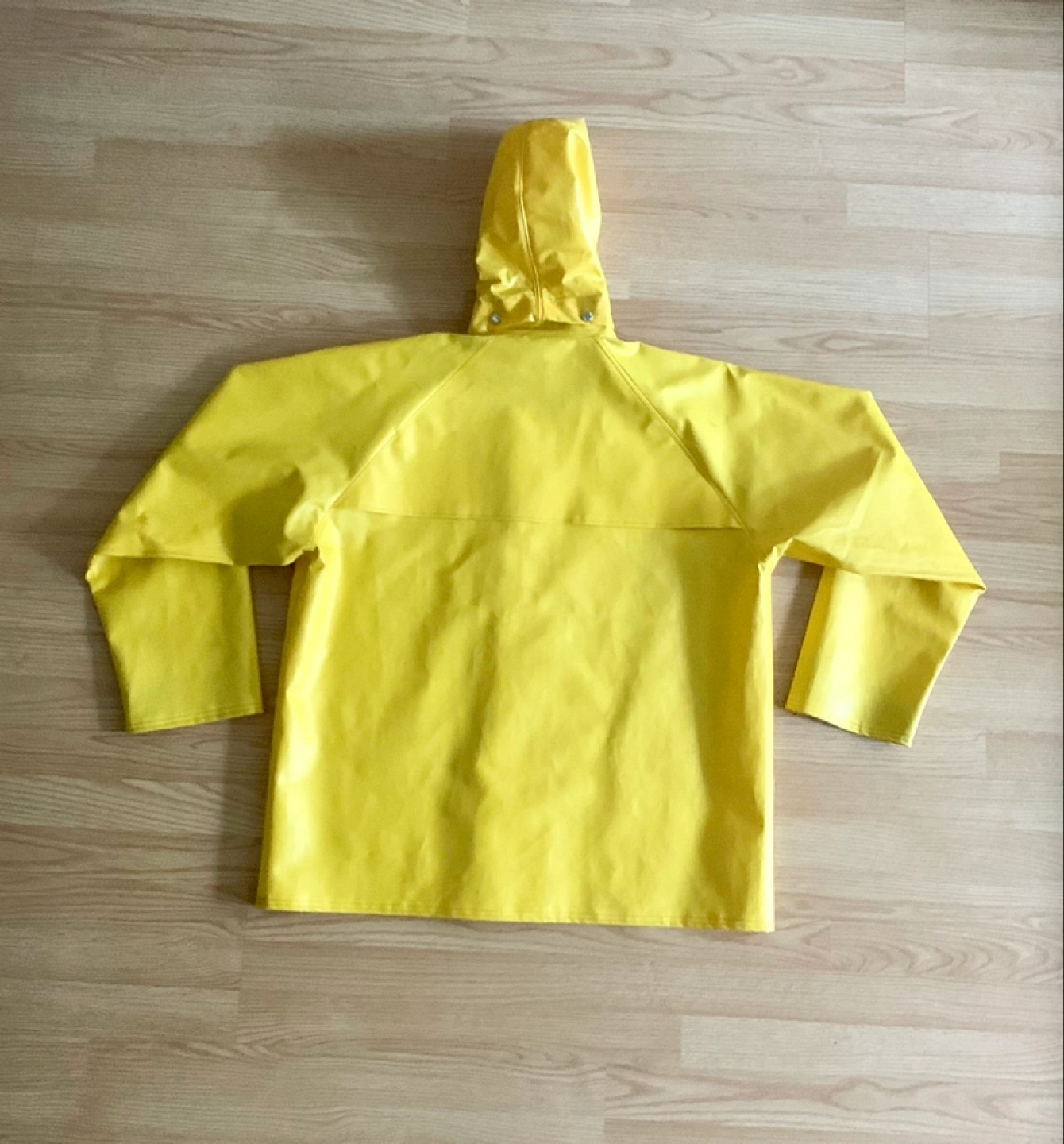 Vintage yellow rain jacket. Size XL. Oil resistant. Features a removable hood.