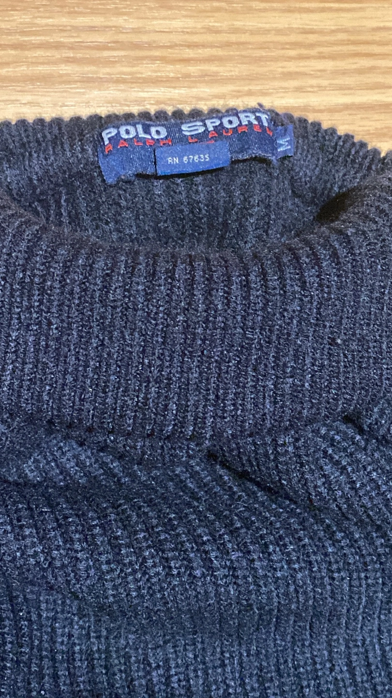 Vintage Polo Sport Ralph Lauren turtleneck sweater. Navy blue colour. Ribbed knit. Small embroidered logo. Great casual piece.