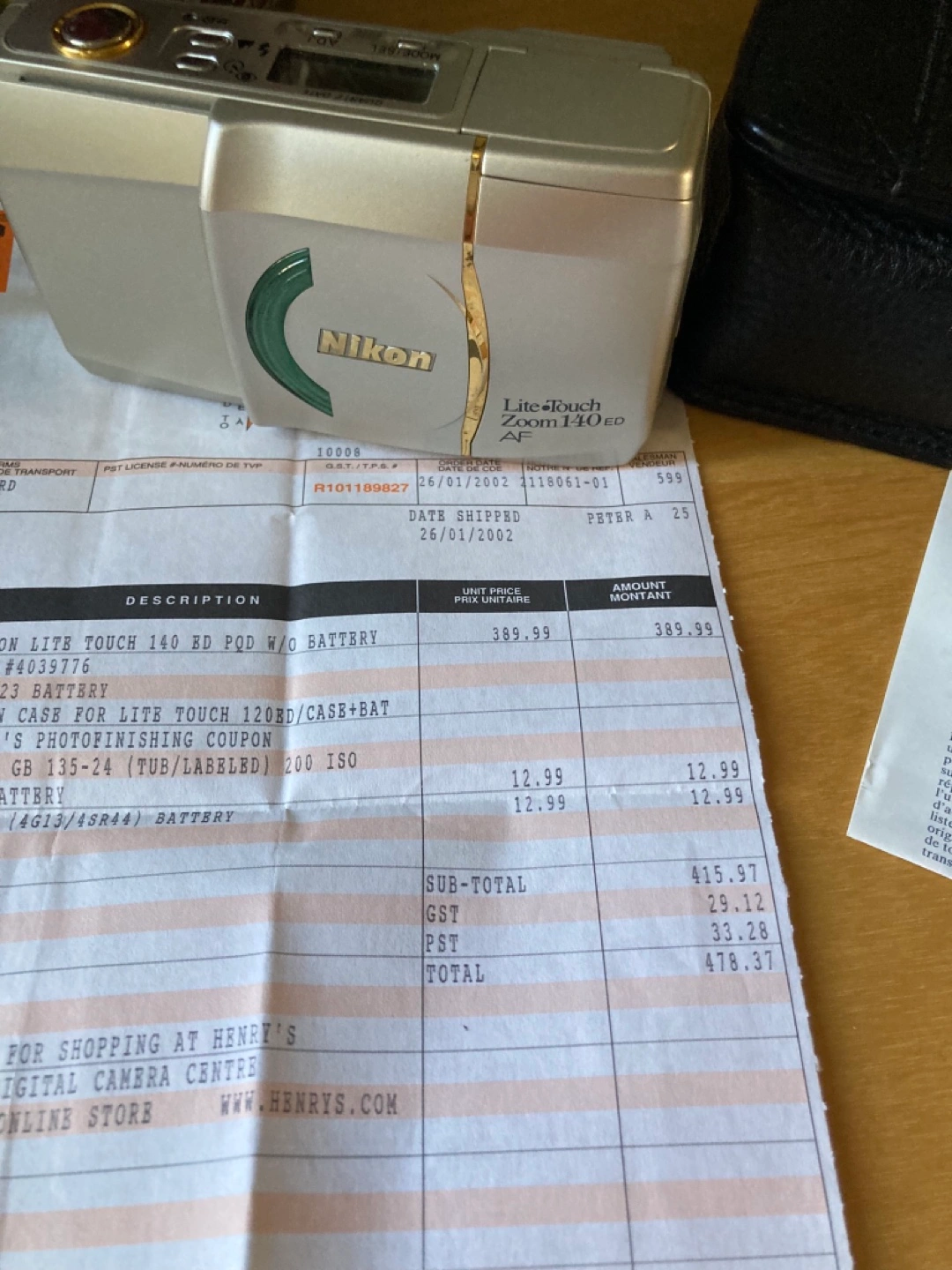 Camera with instructor and case bought at Henry’s in 2002 for $400.