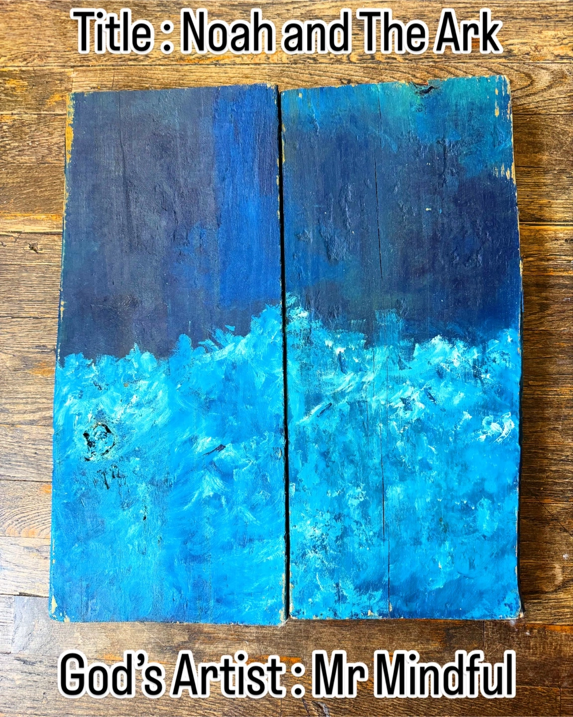 19Hand painted. Depicts a stormy sea. Blues and dark blues. 2 Wooden panels( each panel: 15x12x2 ).Signed by the artist. Mr. Mindful