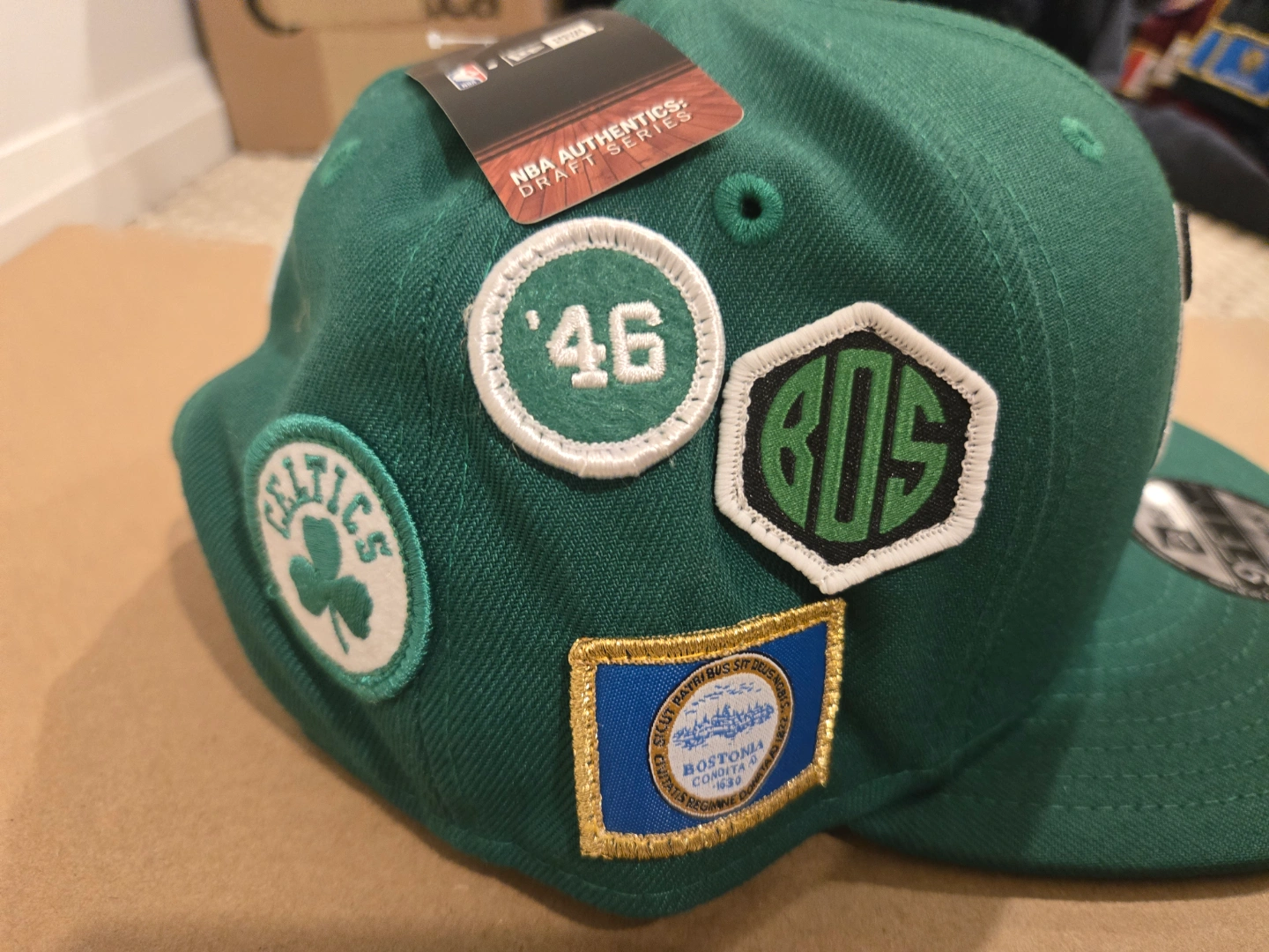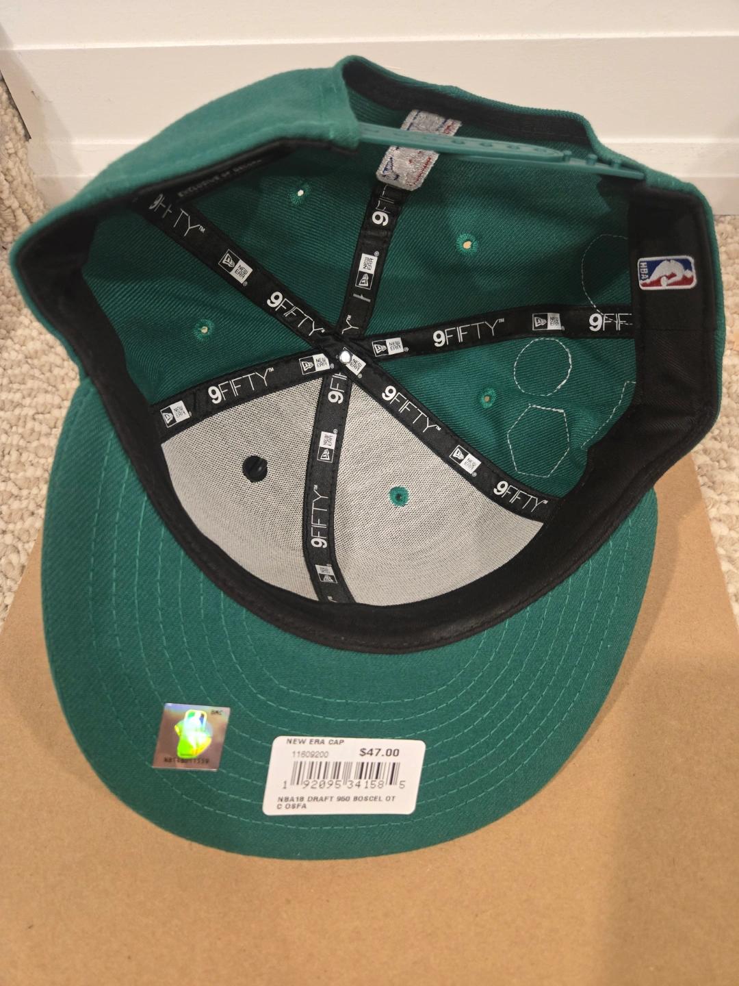 Green fitted hat. Features multiple patches. NBA authentic. New Era 9Fifty snapback. Official draft cap worn by the NBA players. rare find with the pin included