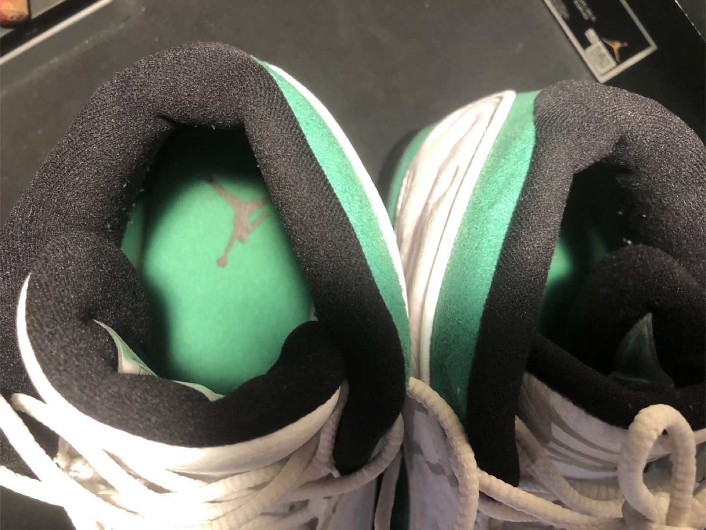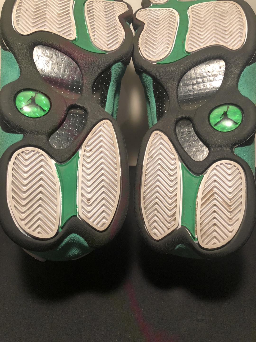 Preowned but super clean, Air Jordan Lucky Green Sneakers, size 8.5 , please see all photos