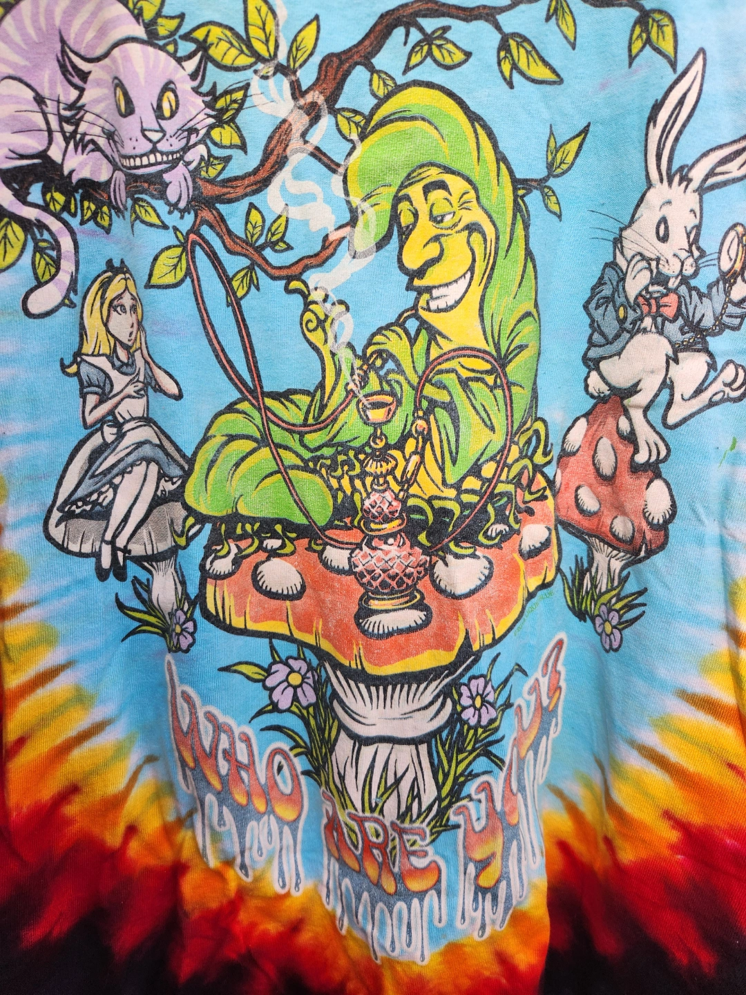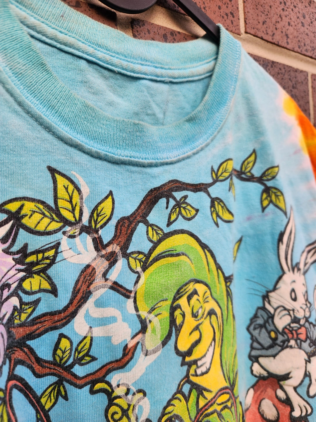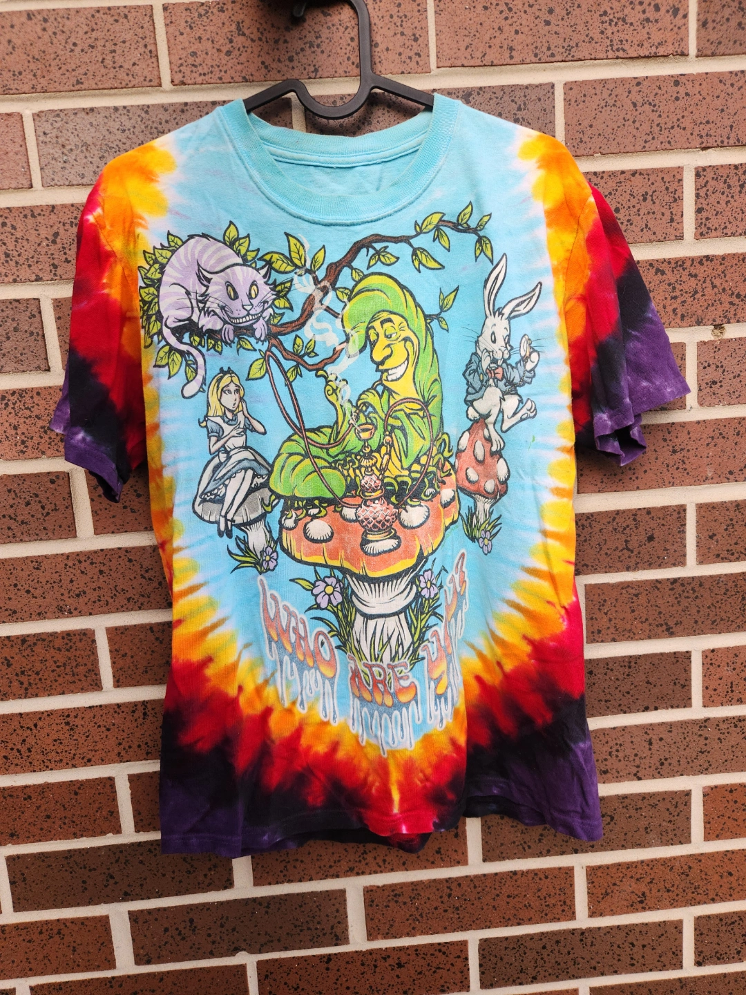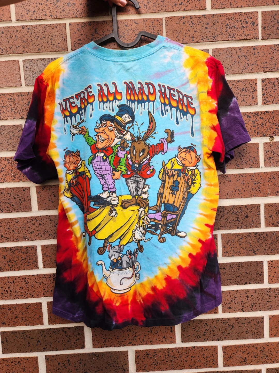 Stunning tie-dye graphic t-shirt with Alice in Wonderland characters. Bright, bold, trippy, in great condition.