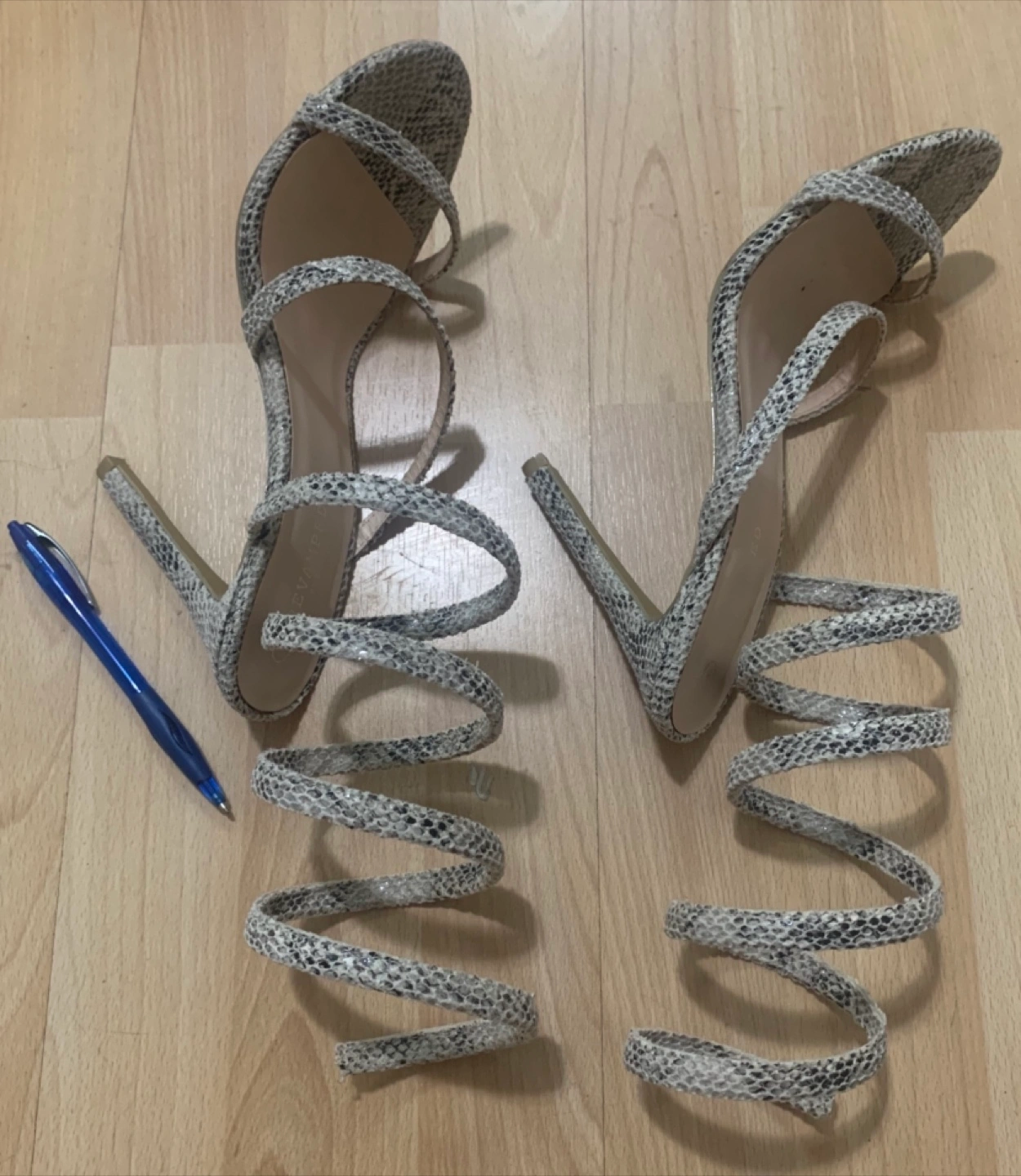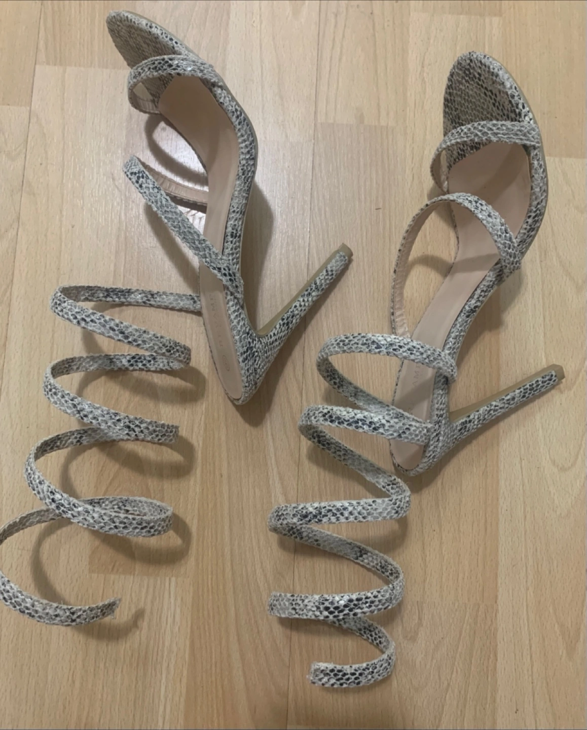 571Elegant high heels. Unique spiral design. Snakeskin print. Perfect for a night out. Label Size 41 ,US- 9