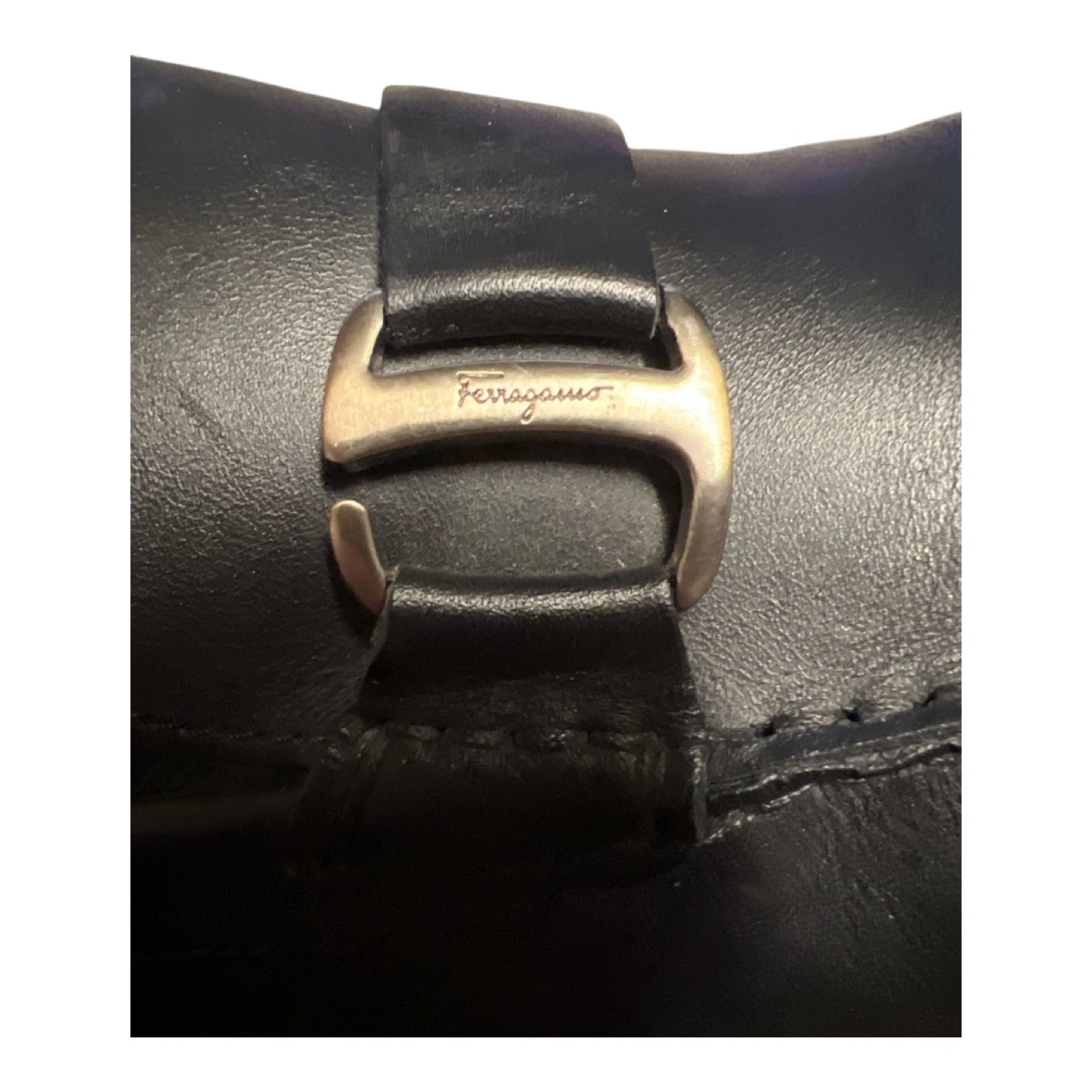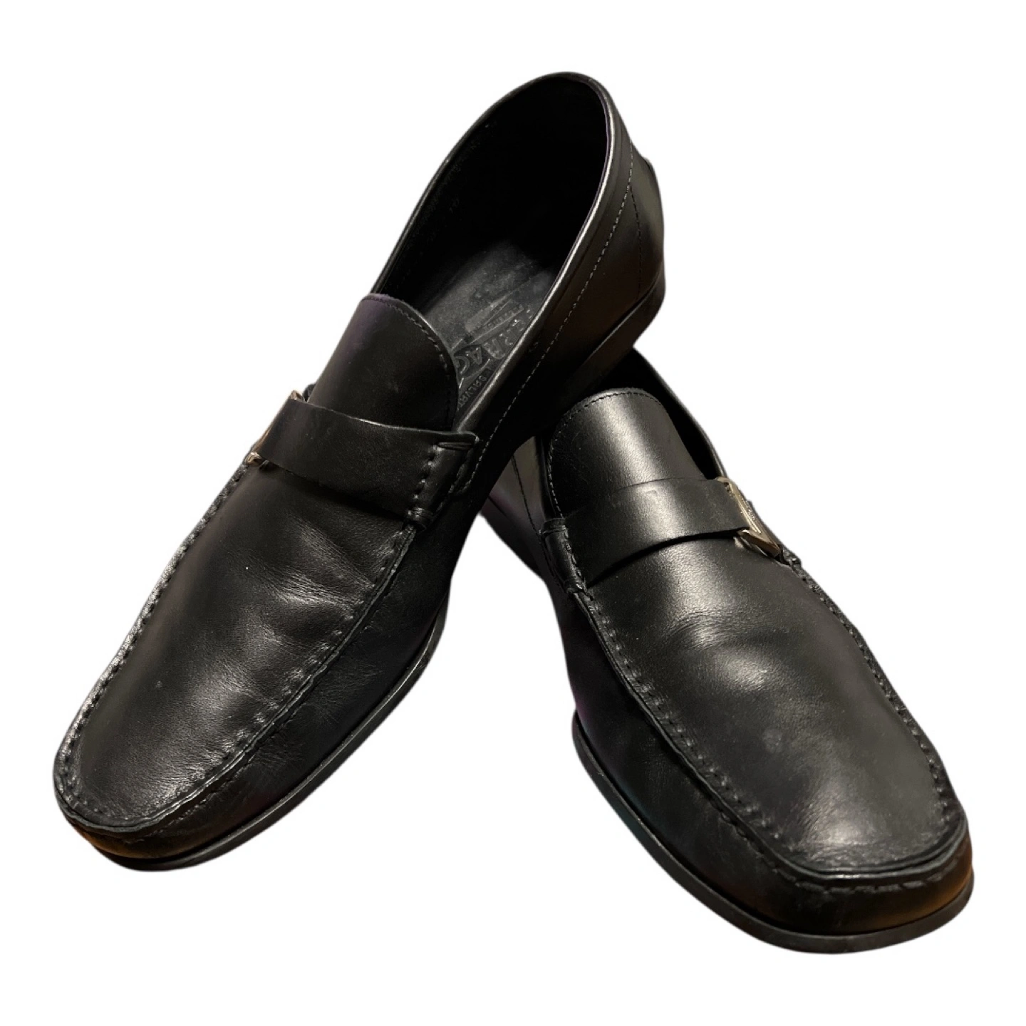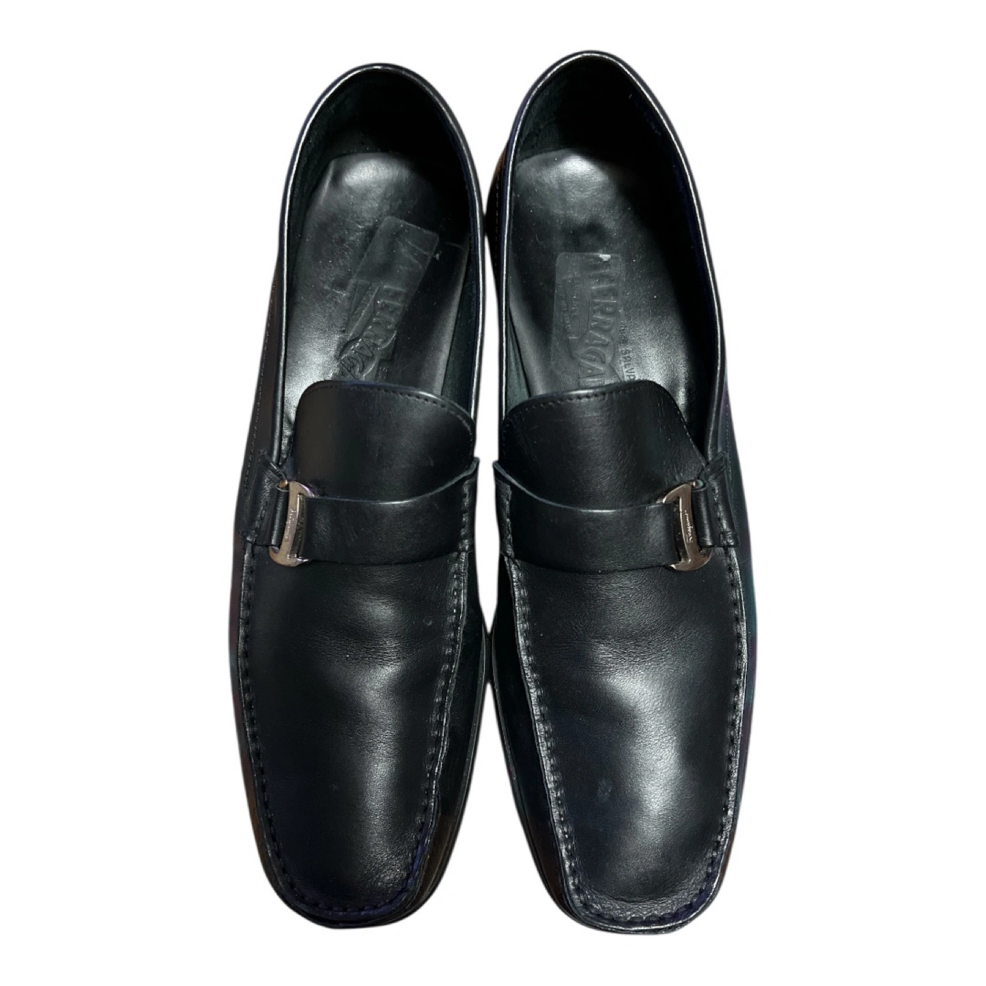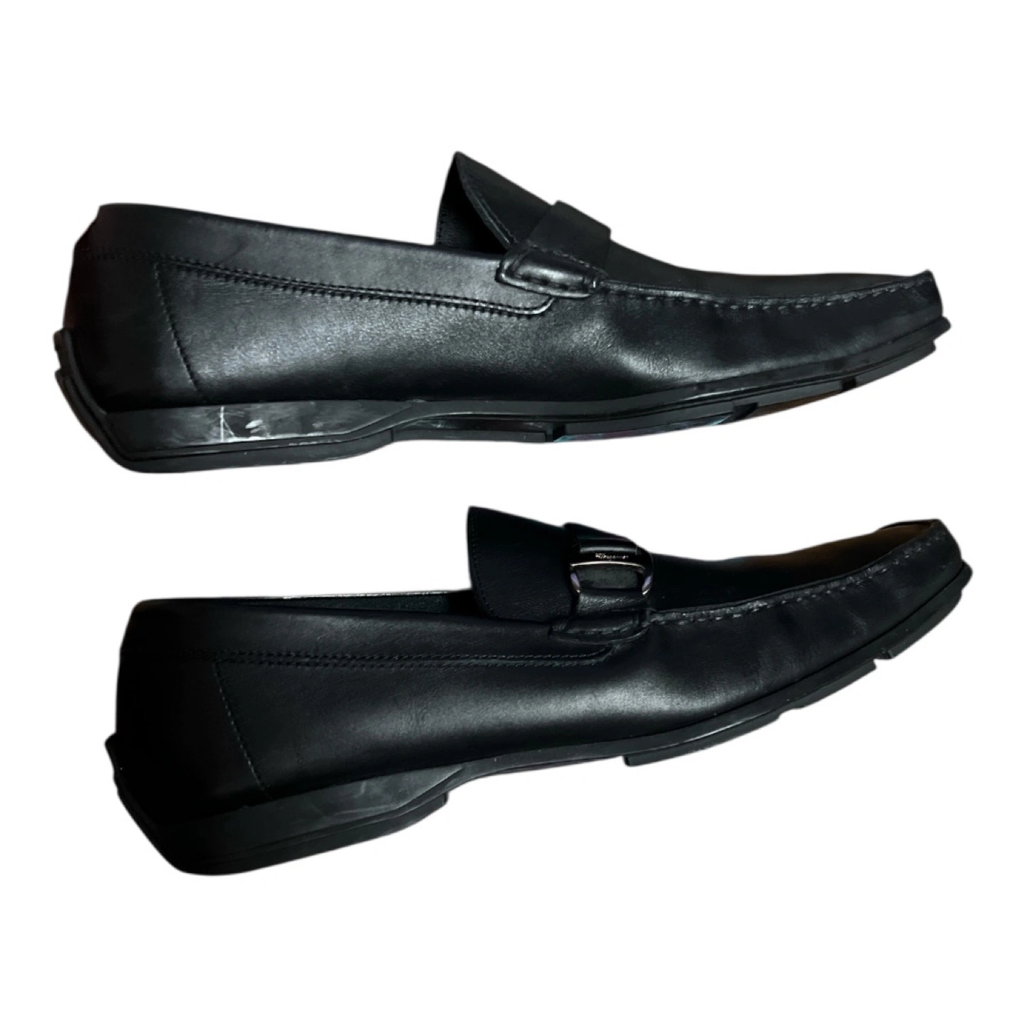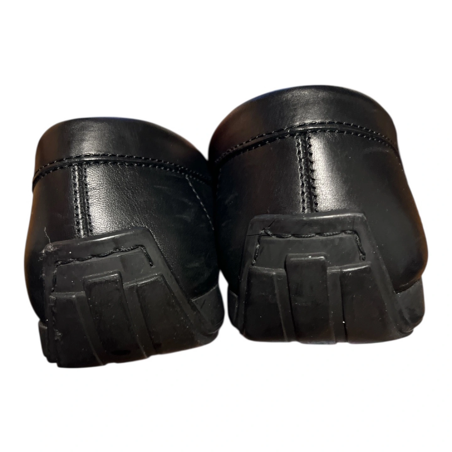 Men's black leather loafers. Silver-toned hardware. Made in Italy. Slight wear.