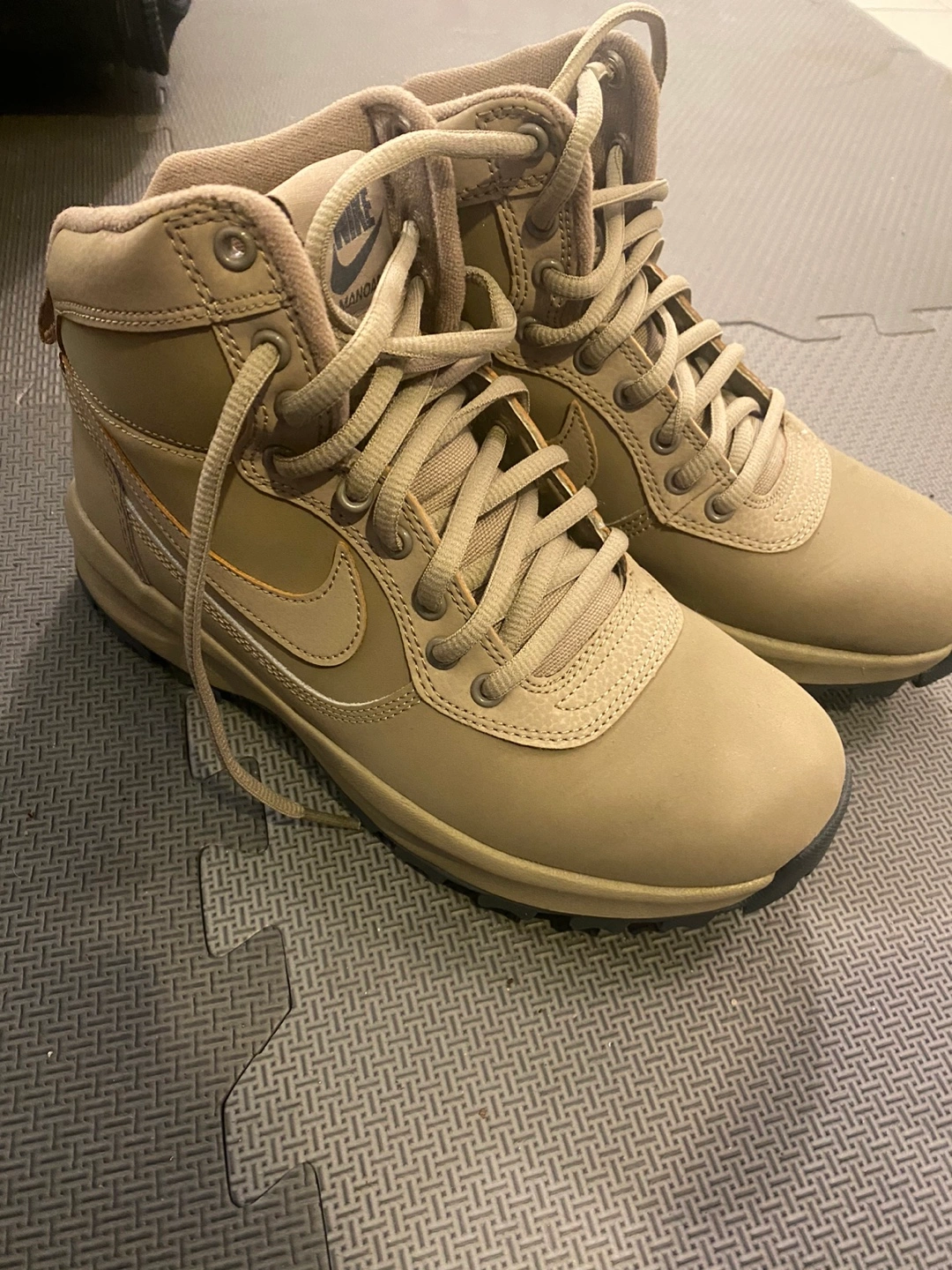 Women's Nike hiking boots. Tan colour. Lace-up closure. Good for fall and winter. High-top design for ankle support. Worn once!