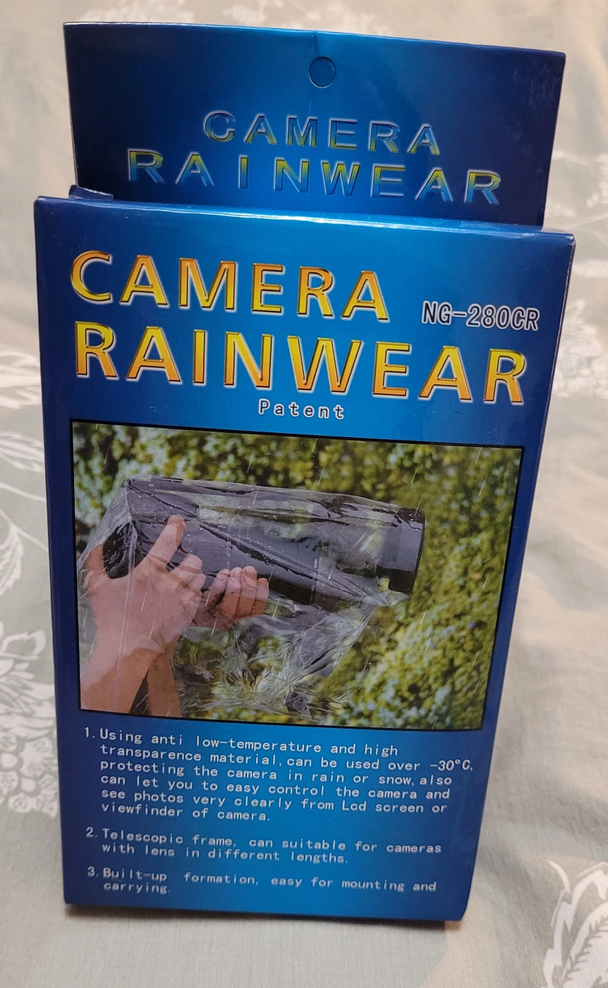 603Waterproof camera cover. Keeps cameras dry in the rain. Telescopic design. Suitable for various camera sizes. Includes instruction sheet. New in box. Pick up only, Don Mills and York Mills area.