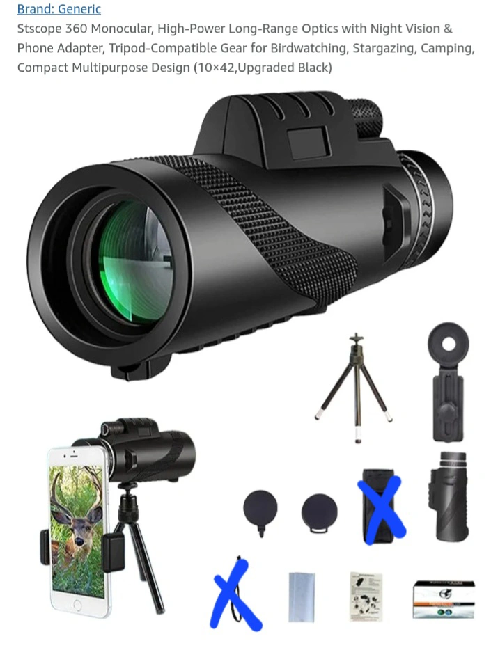 π NEW! 360 Monocular Telescope, Smartphone Adapter & Tripod