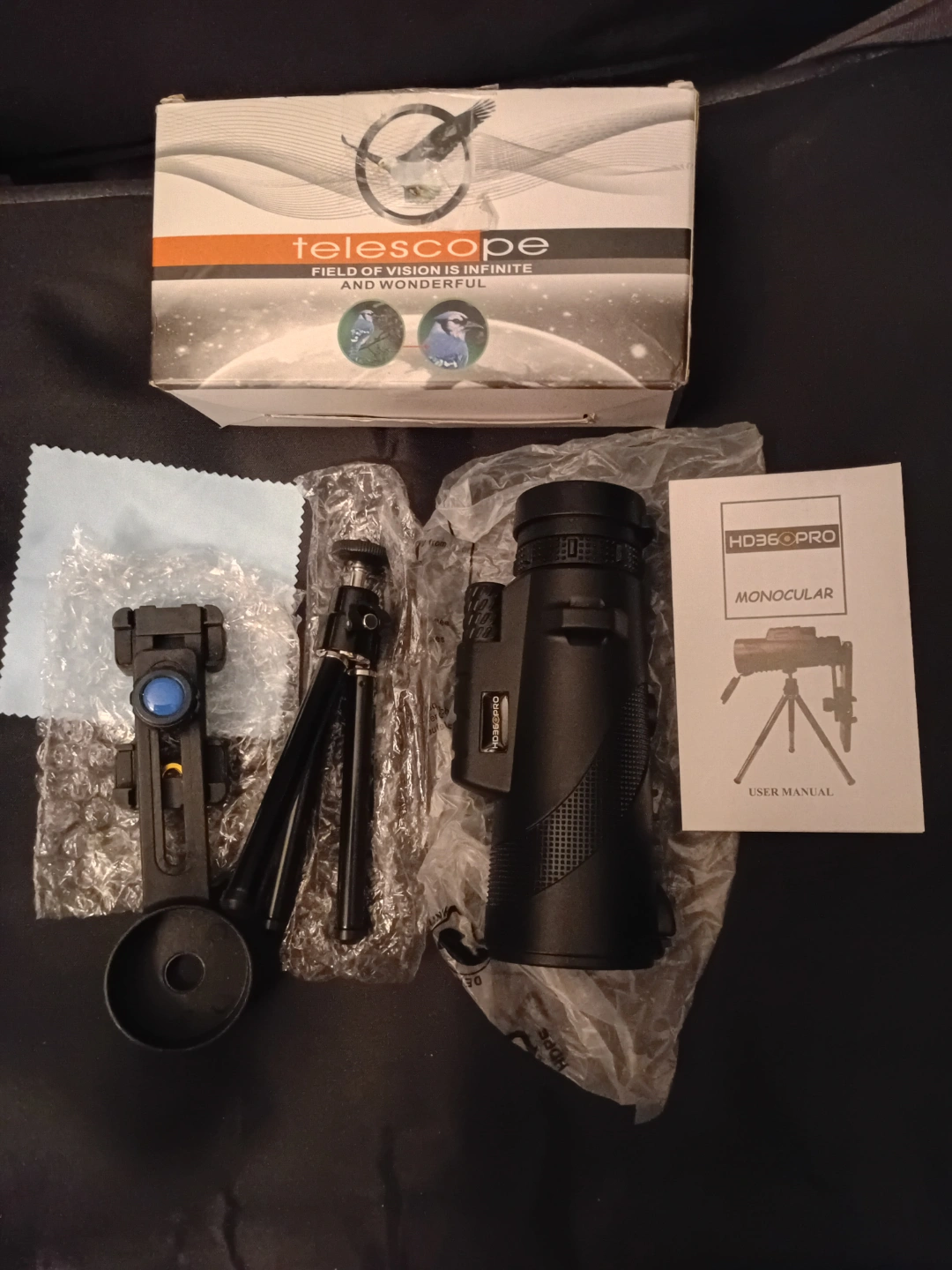 High-power long-range optics with night vision. Phone adapter, tripod-compatible. Great for birdwatching, stargazing, camping. Compact multipurpose design. Lightweight and portable. Waterproof, shockproof, dustproof, and fogproof.