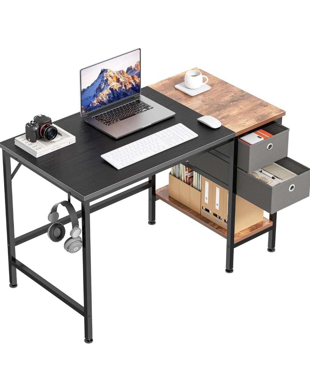 40 inch Office Desk with Two Non Woven Drawers, Computer Writing Desk Work Table for Bedroom, Home, Office, Kid Student Study Desk for Dorm Room.