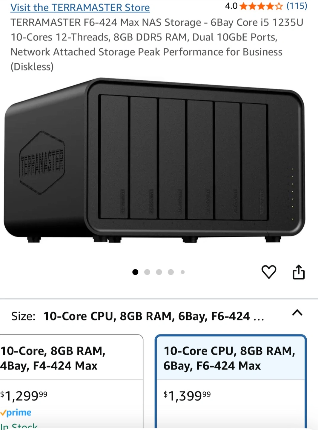 TerraMaster F6-424 Max 6-Bay NAS Storage Server - 10-Core CPU