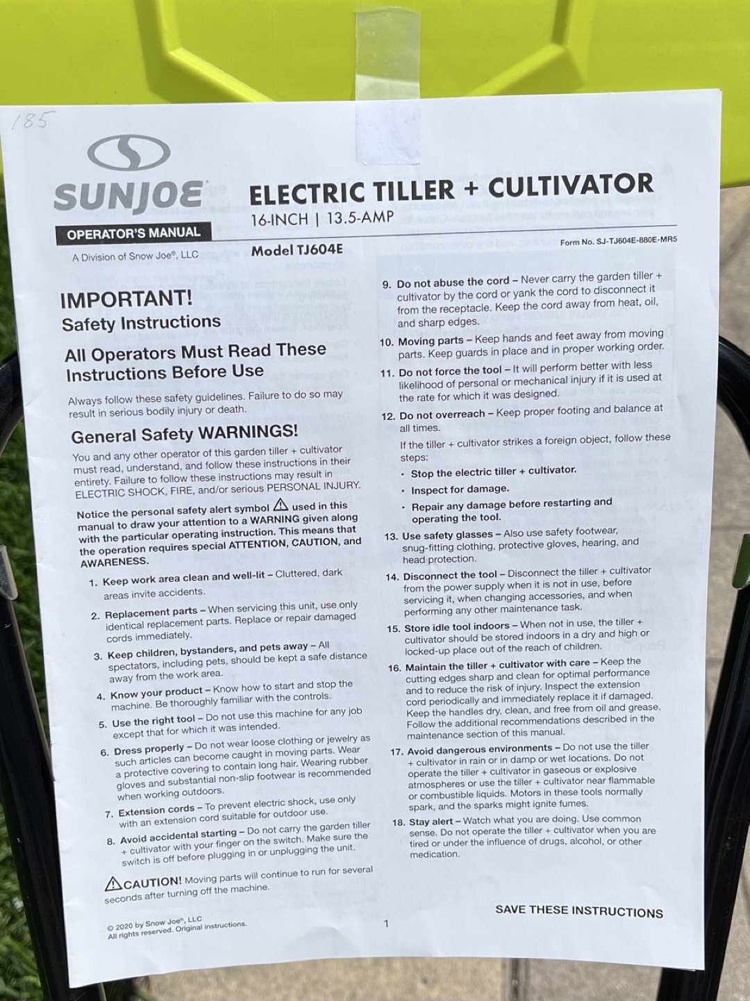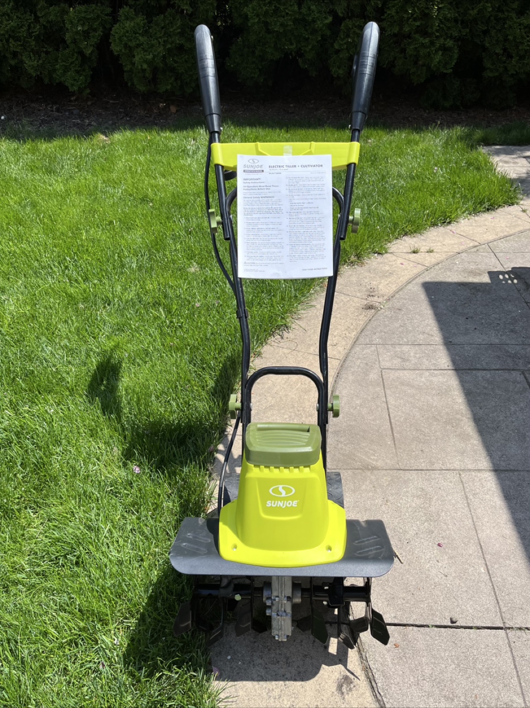Electric tiller and cultivator. 16-inch, 13.5-amp. Good for small gardens. Includes operator's manual.
