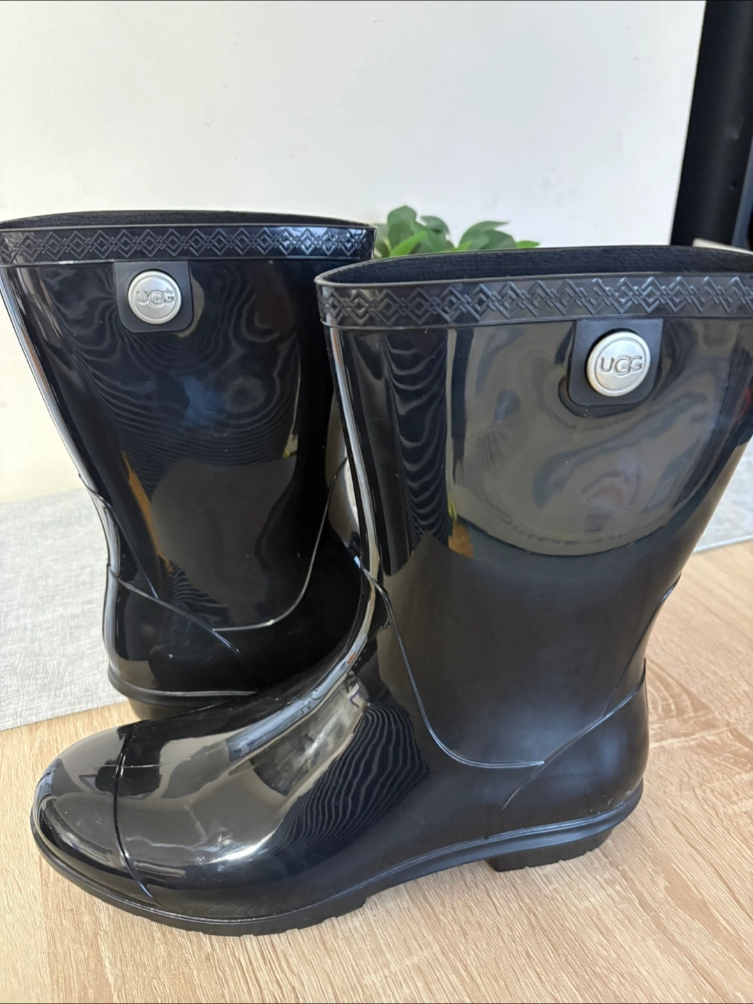 Women's black rain boots. Size 11. Glossy finish. UGG logo. Brand new no box